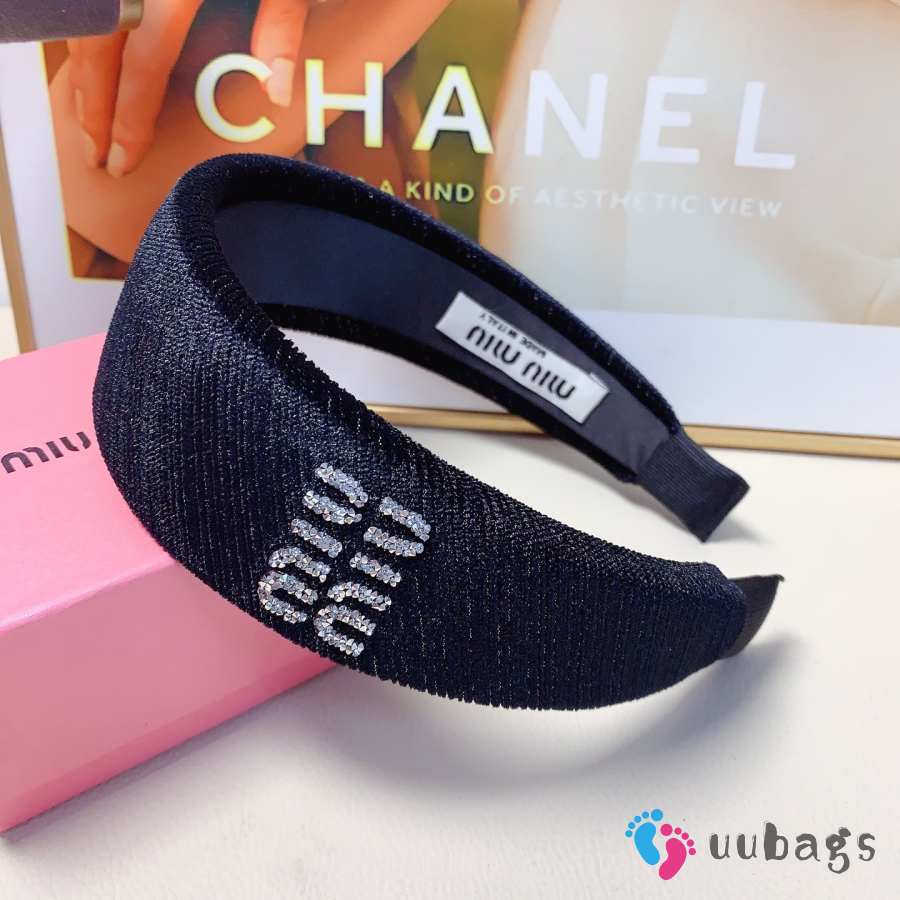 Uubags Miu Miu Velvet Logo-Embellished Headband Black