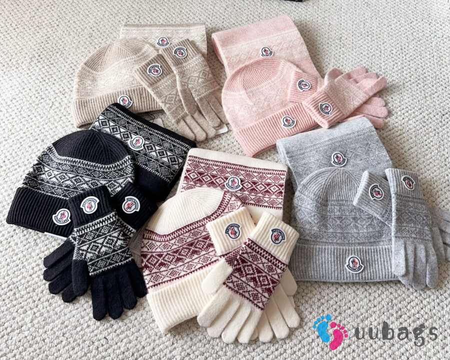 Uubags Moncler three-piece set (scarf, pompom hat, gloves)