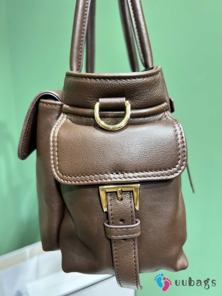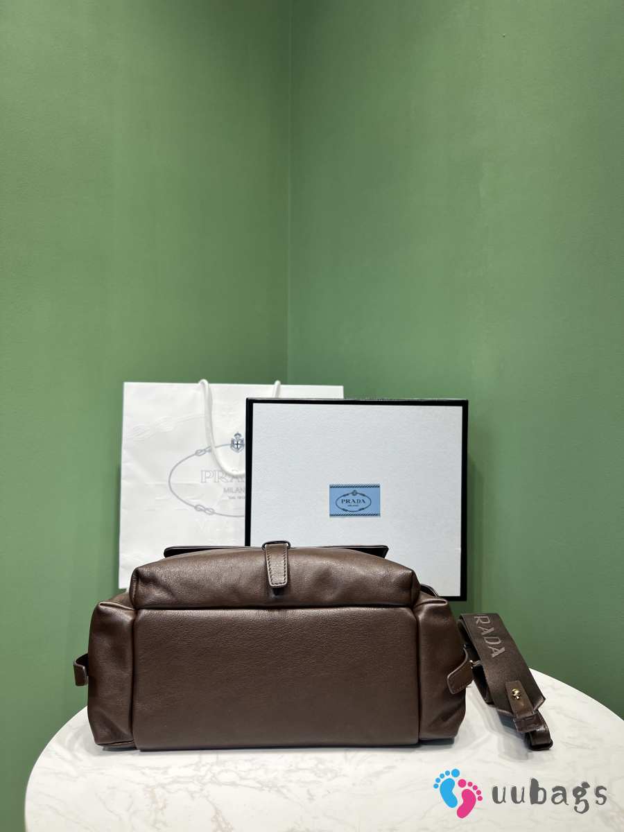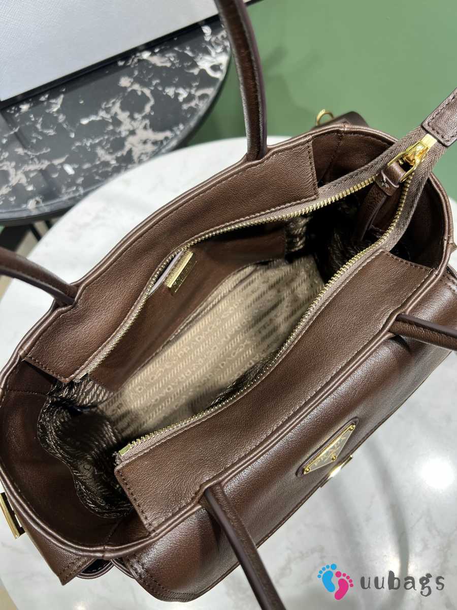 Uubags Prada 1BG596 Explore medium nappa leather tote bag in dark brown 31x17x11cm
