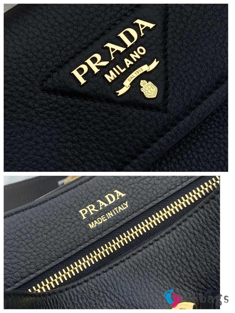 Uubags Prada 1BN022 small leather shoulder bag in black 26x14x9.5cm