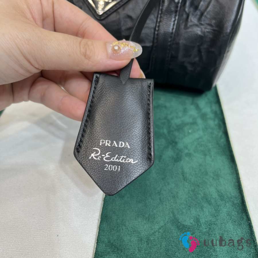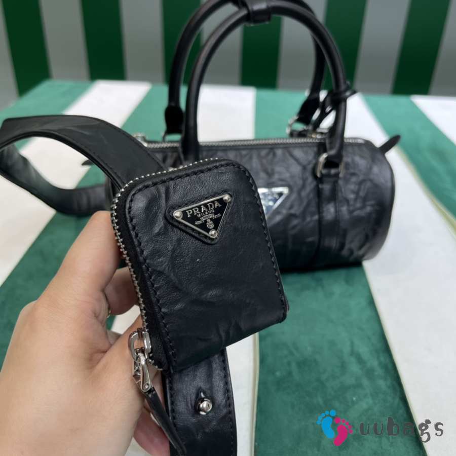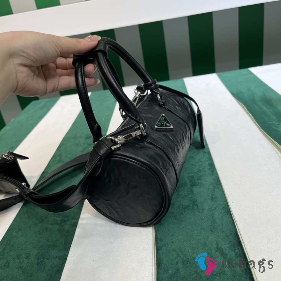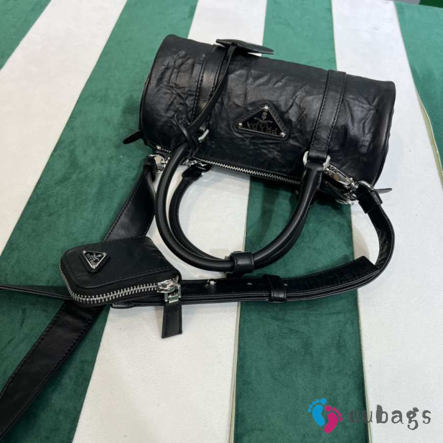 Uubags Prada Antique Leather Bowling Bag in Black 22x10x9cm
