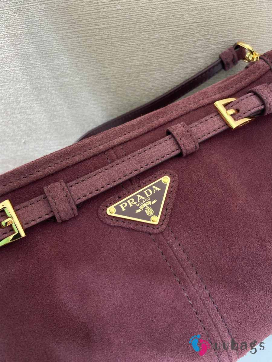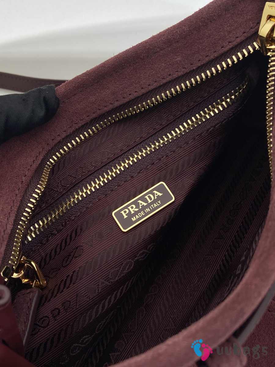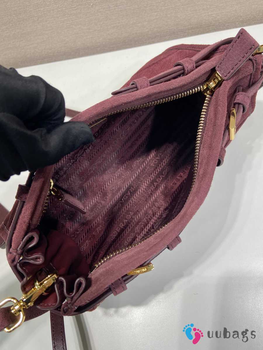 Uubags Prada Bonnie small suede shoulder bag in burgundy 26x14x12cm