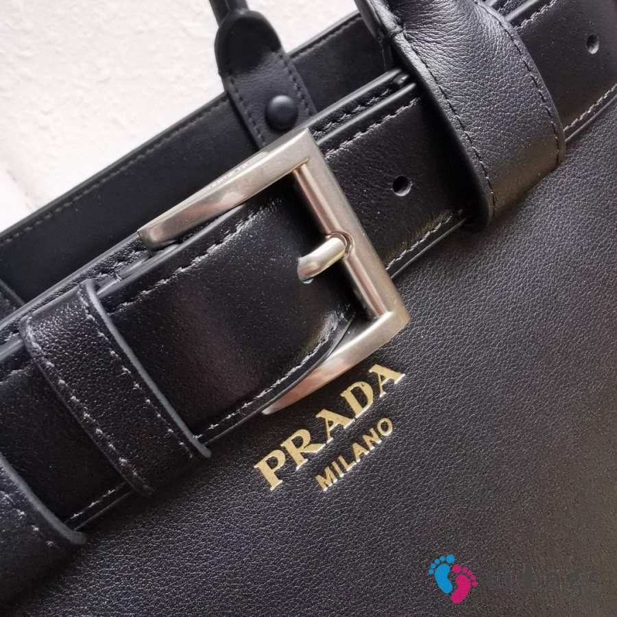 Uubags Prada Buckle small leather handbag with belt in black 32x23x11cm