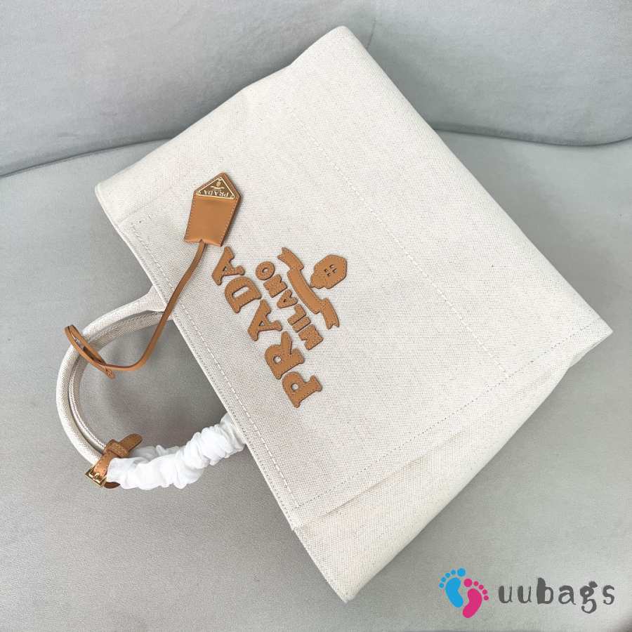 Uubags Prada Large linen blend tote bag in beige 43x30x20cm