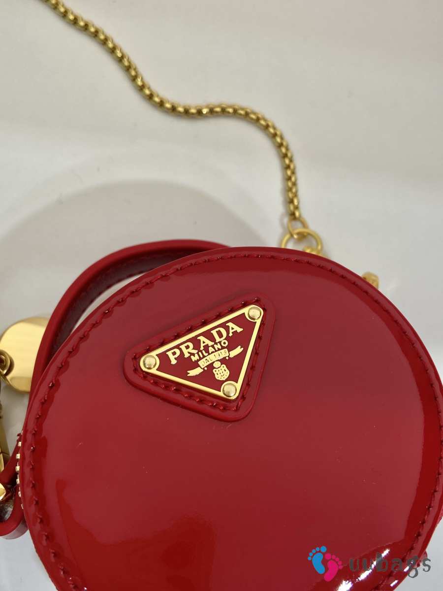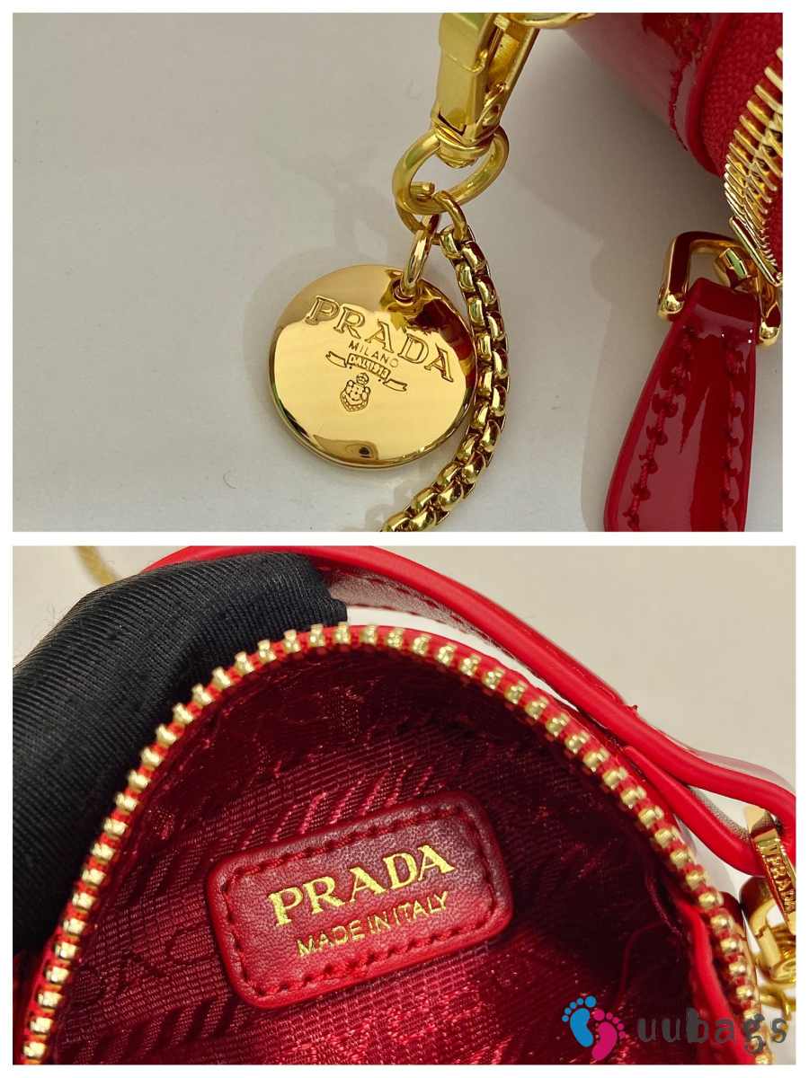 Uubags Prada Saffiano Leather Mini Pouch Bag Glossy Red 8x8x3.5cm