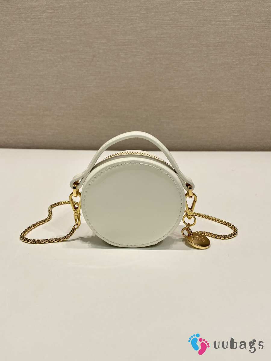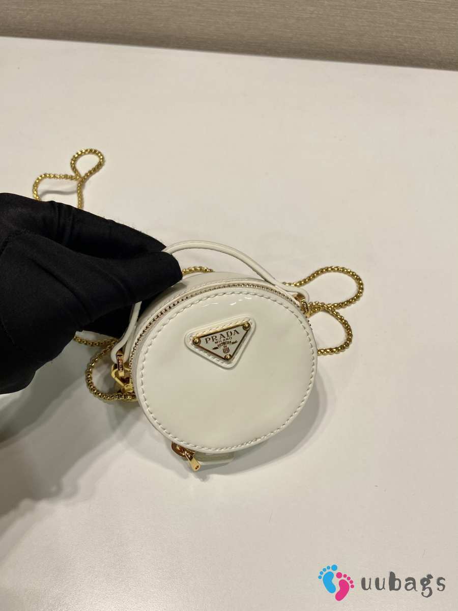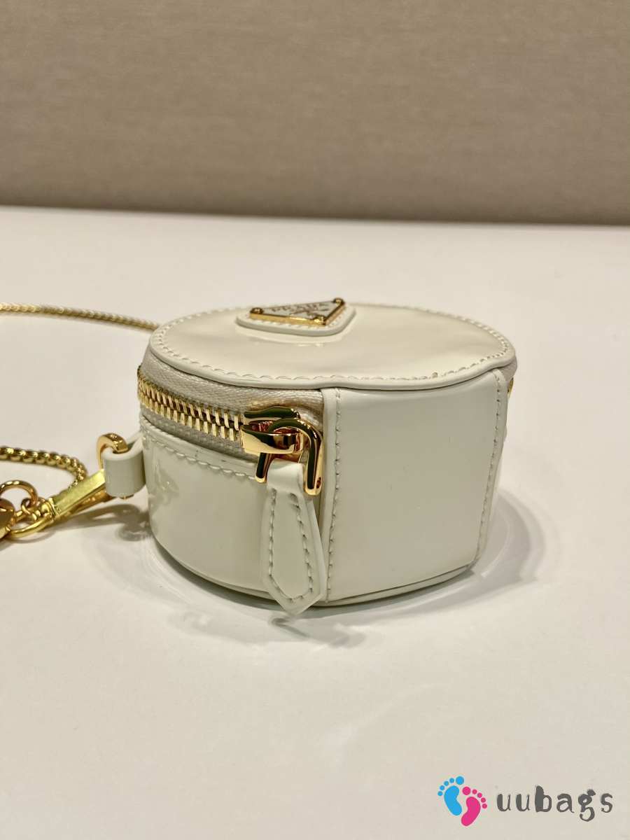 Uubags Prada Saffiano Leather Mini Pouch Bag Glossy White 8x8x3.5cm
