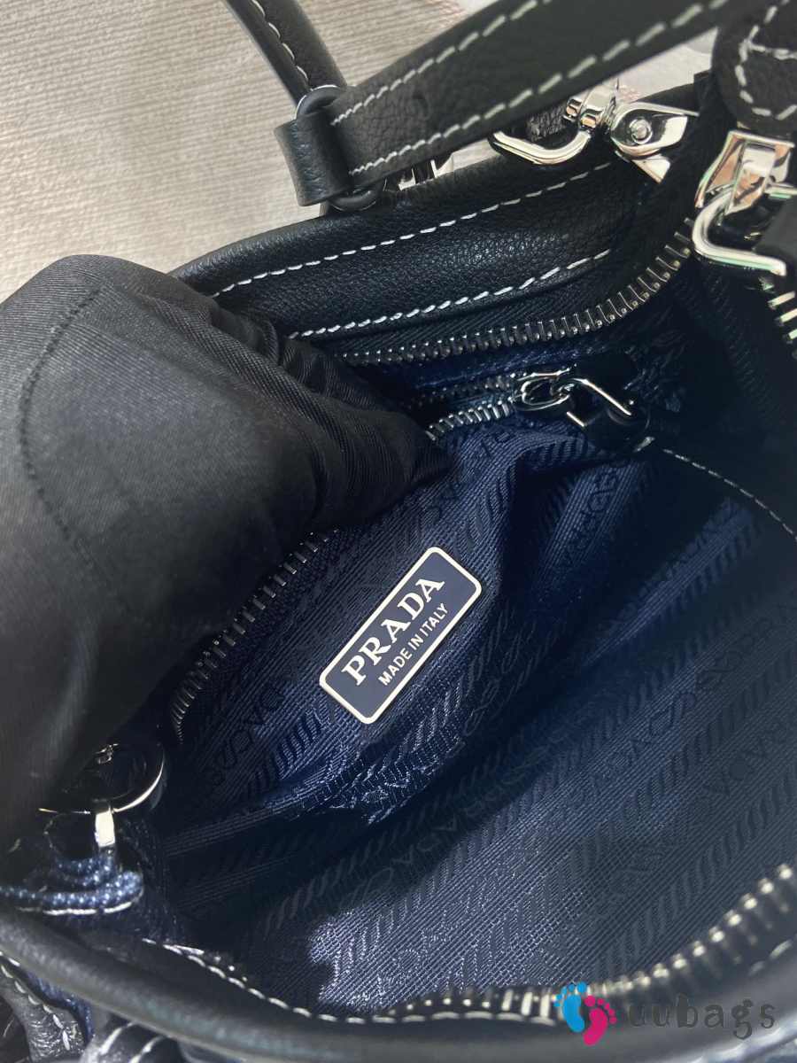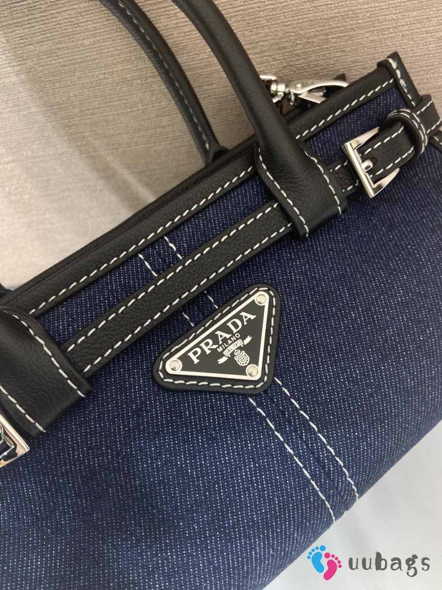 Uubags Prada Symbole Top-Handle Bag in Denim and Leather Black 23.5x12x9cm