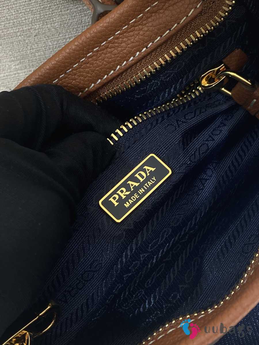Uubags Prada Symbole Top-Handle Bag in Denim and Leather Cognac 23.5x12x9cm