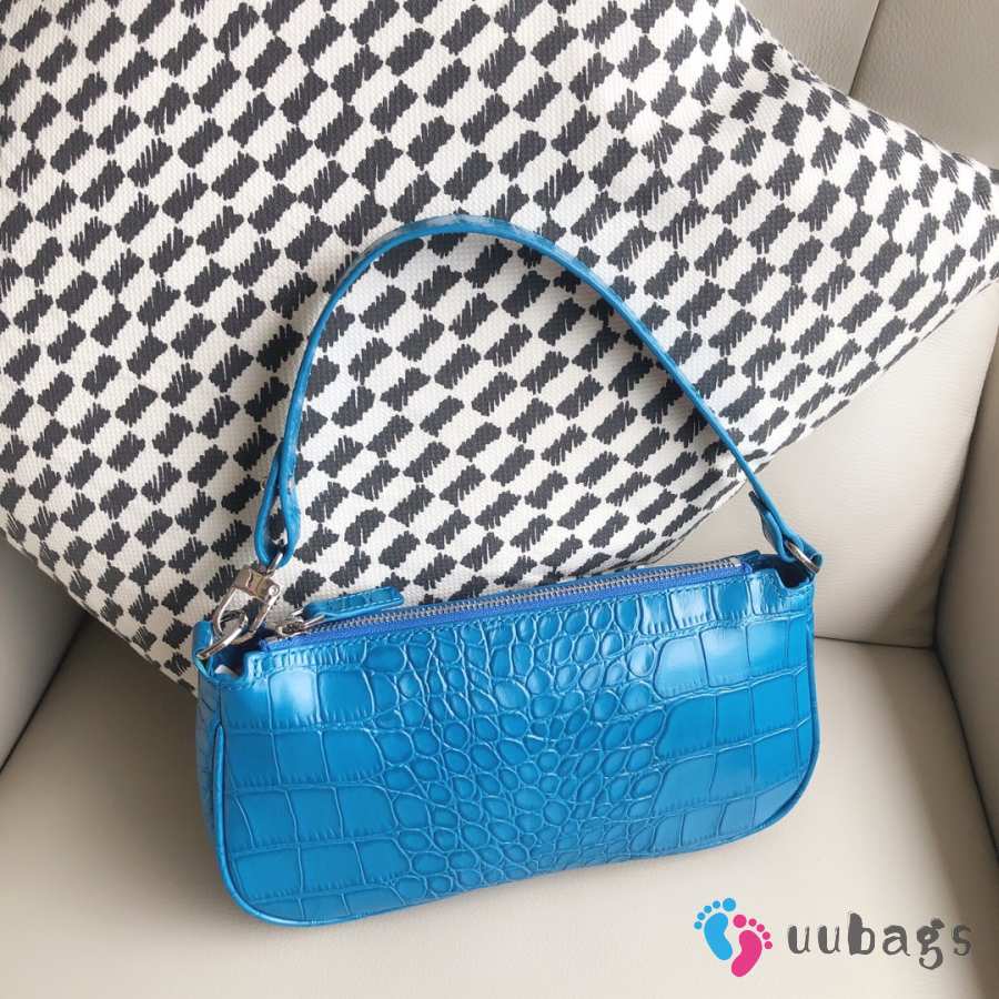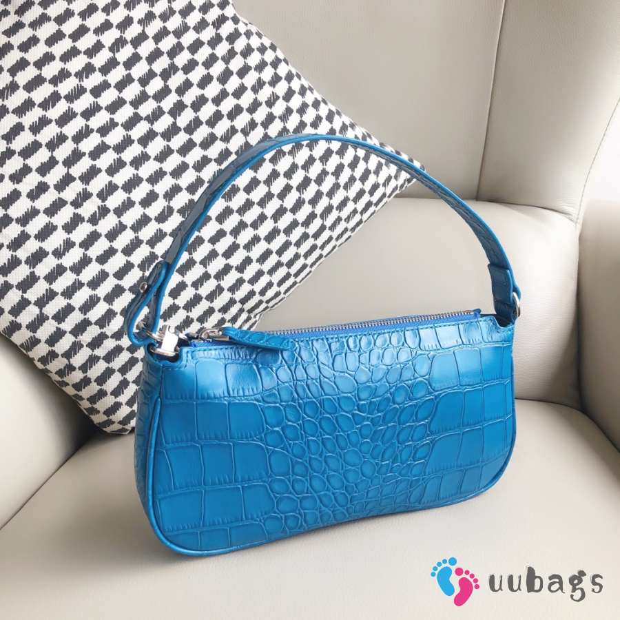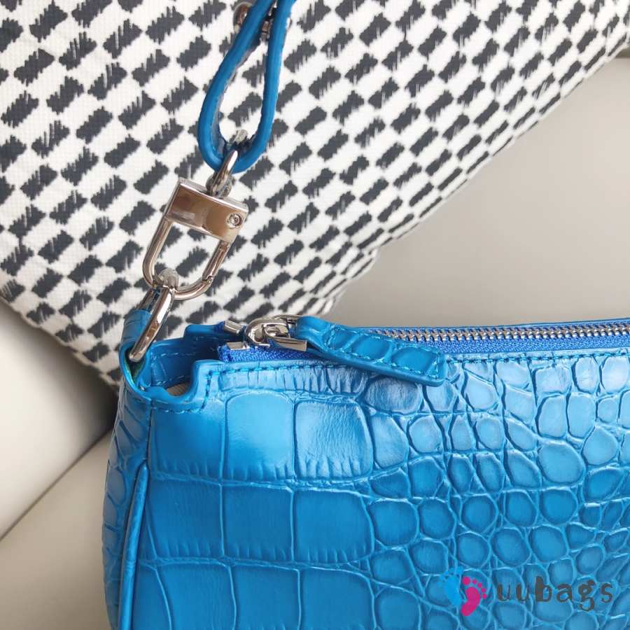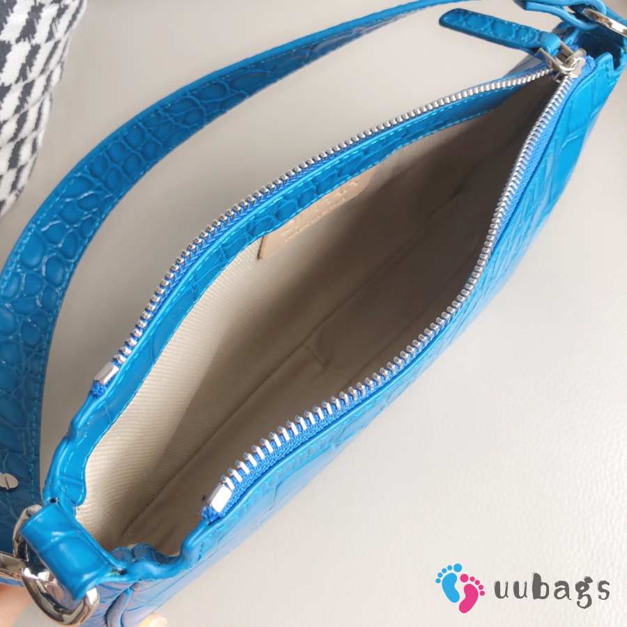 Uubags Rachel Small Blue Croco Embossed Leather Shoulder Bag 18cm