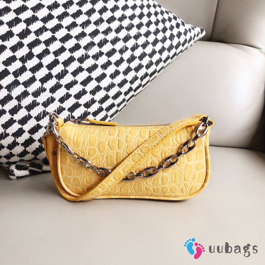 Uubags Rachel Small Yellow Croco Embossed Leather Shoulder Bag 18cm
