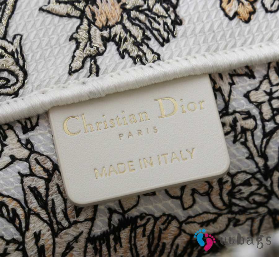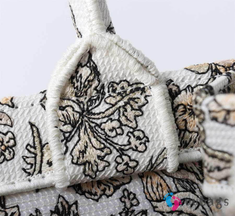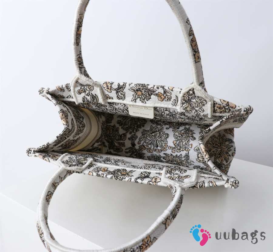 Uubags Small Dior Book Tote Bag in Beige Multicolor Toile de Jouy Flower Embroidery 26.5x21x14cm