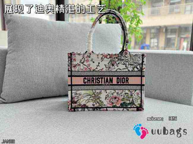 Uubags Small Dior Book Tote Bag Multicolor Dior Saisons Printemps-Ete Embroidery 26.5x22x14cm