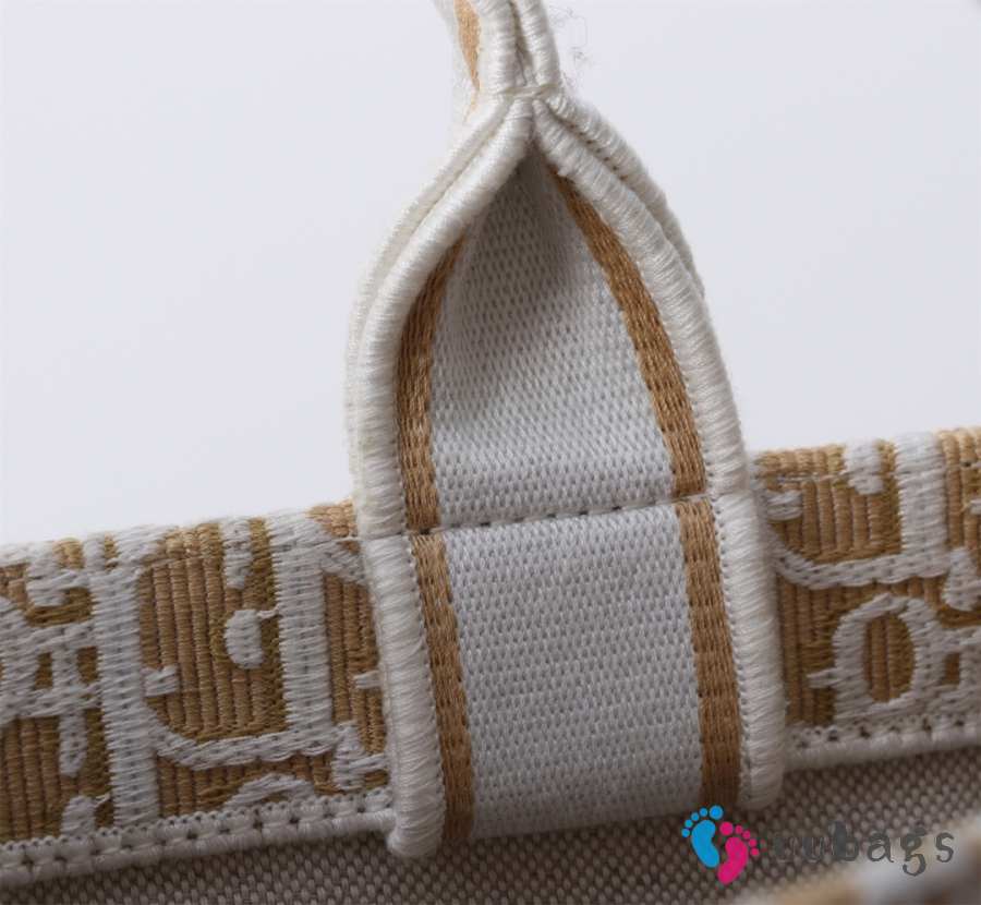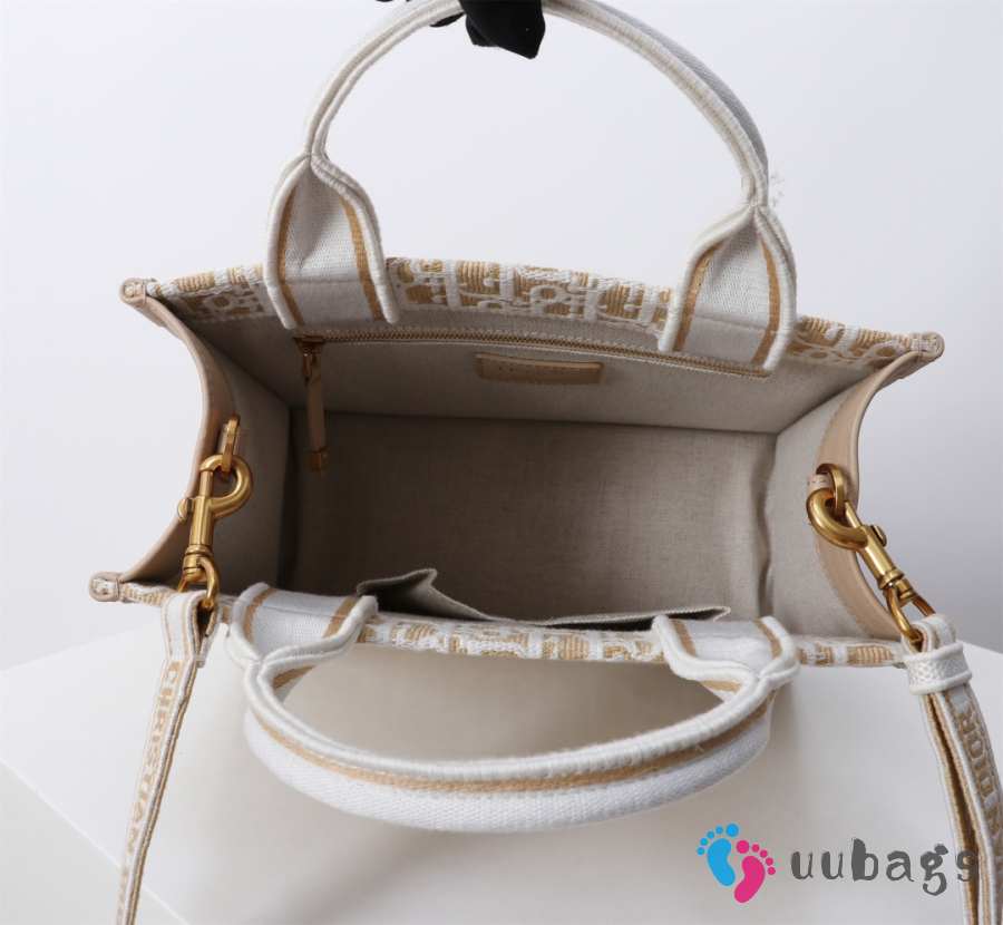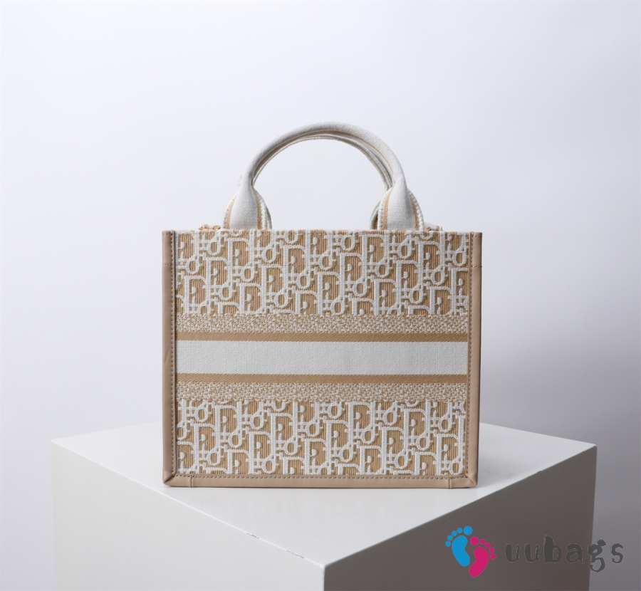 Uubags Small Dior Book Tote Beige Dior Oblique Embroidery and Calfskin 26.5x22x14cm