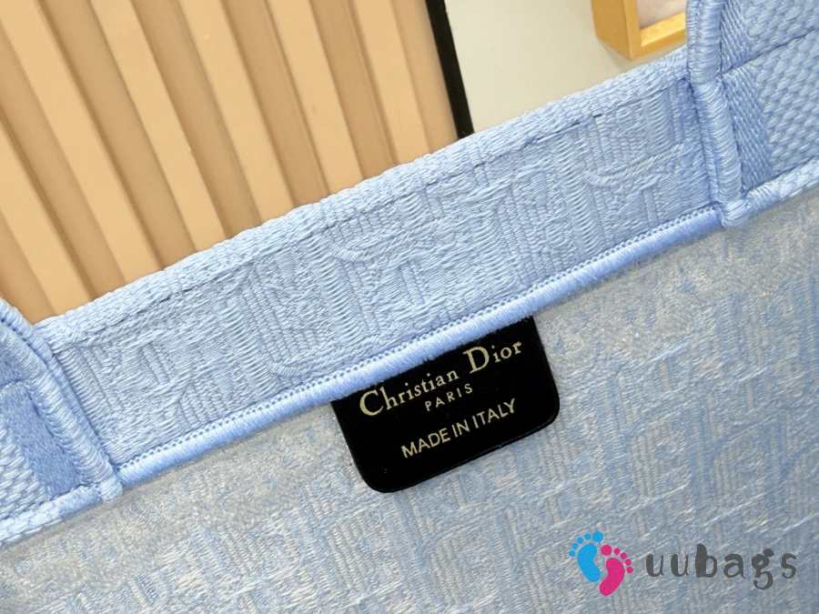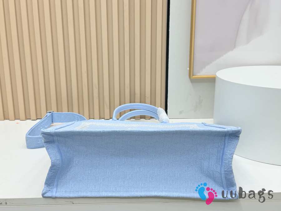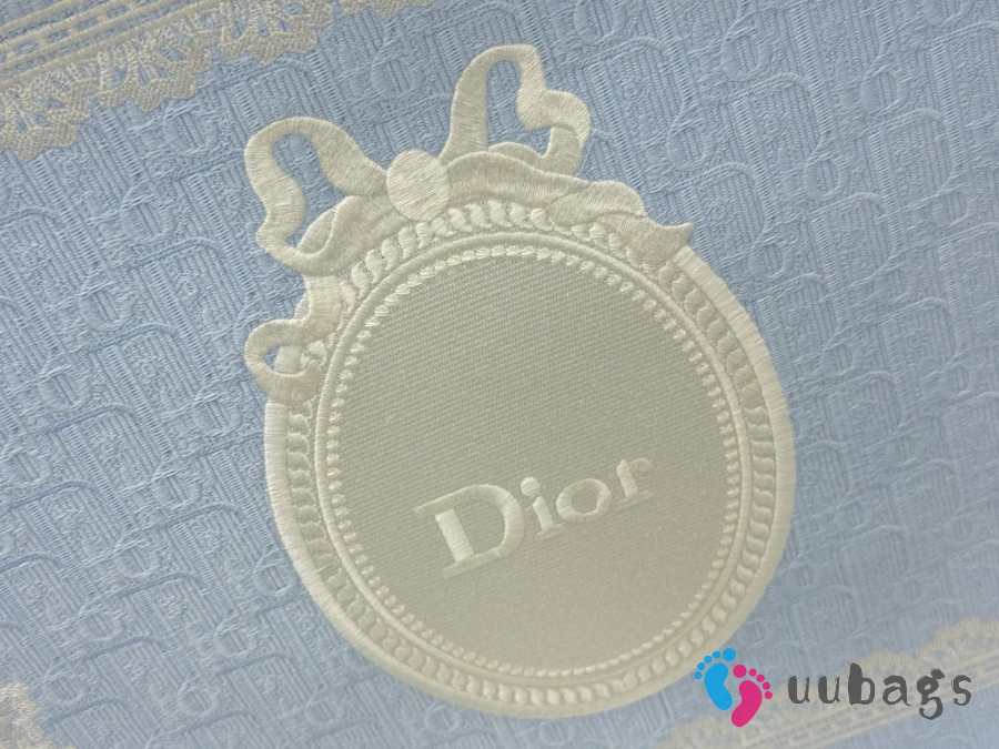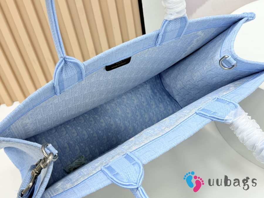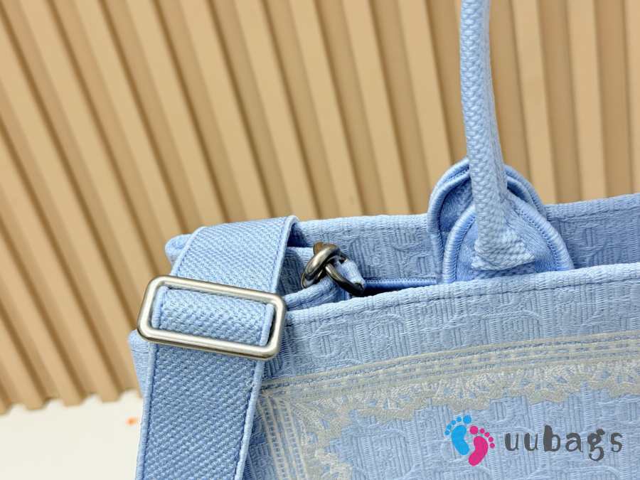 Uubags Small Dior Book Tote with Strap Celestial Blue Dior Oblique Embroidery With White Lace and Dior Médaillon 26.5x22x14cm