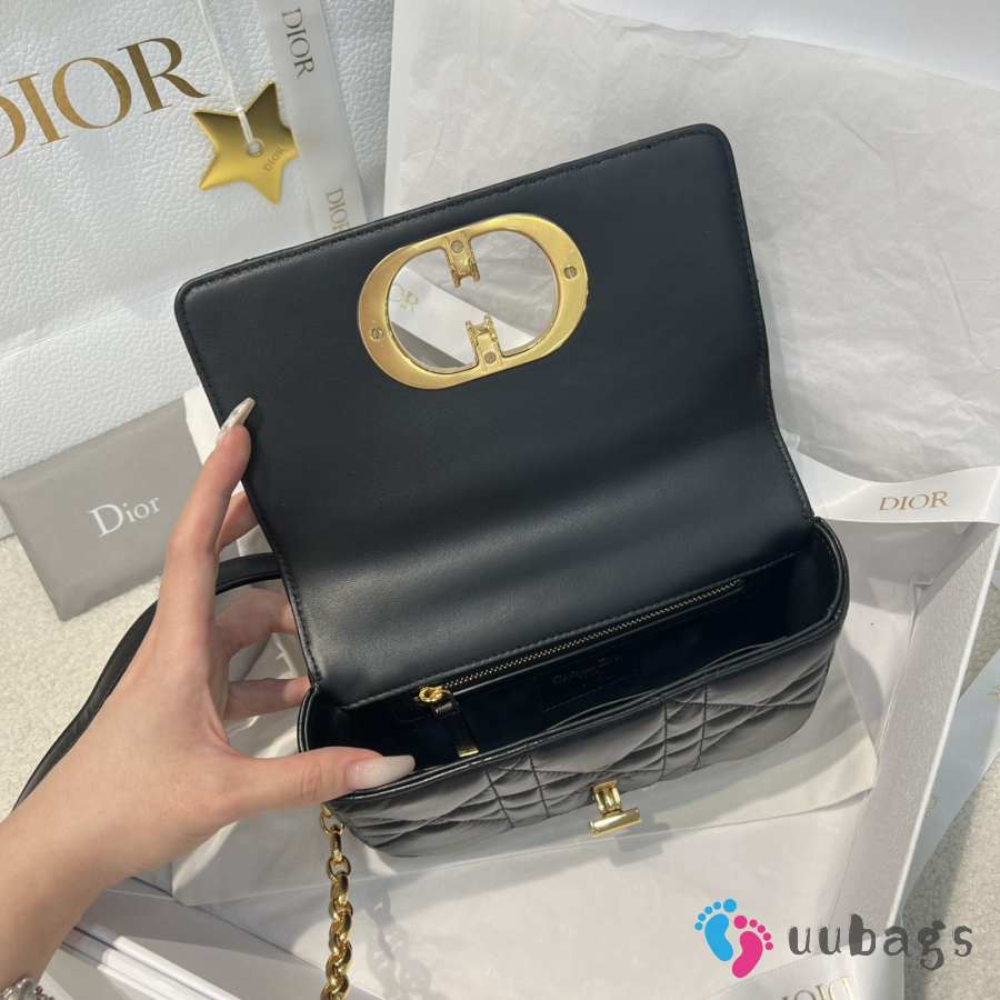 Uubags Small Soft Dior Caro Bag Black Macrocannage Lambskin 20x13x7cm
