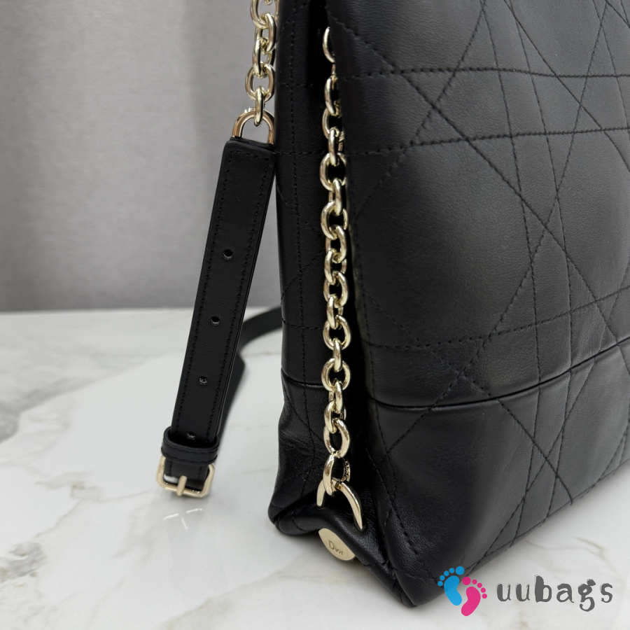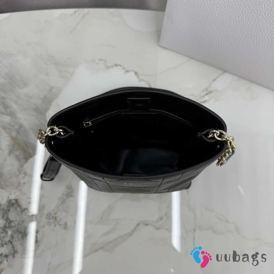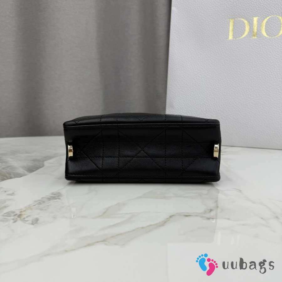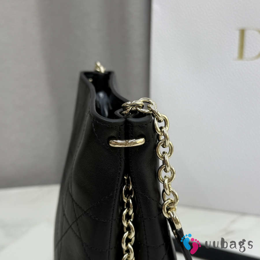 Uubags Small Vertical Dior Trianon Bag With Chain Black Flat Macrocannage Lambskin 18x21x7cm