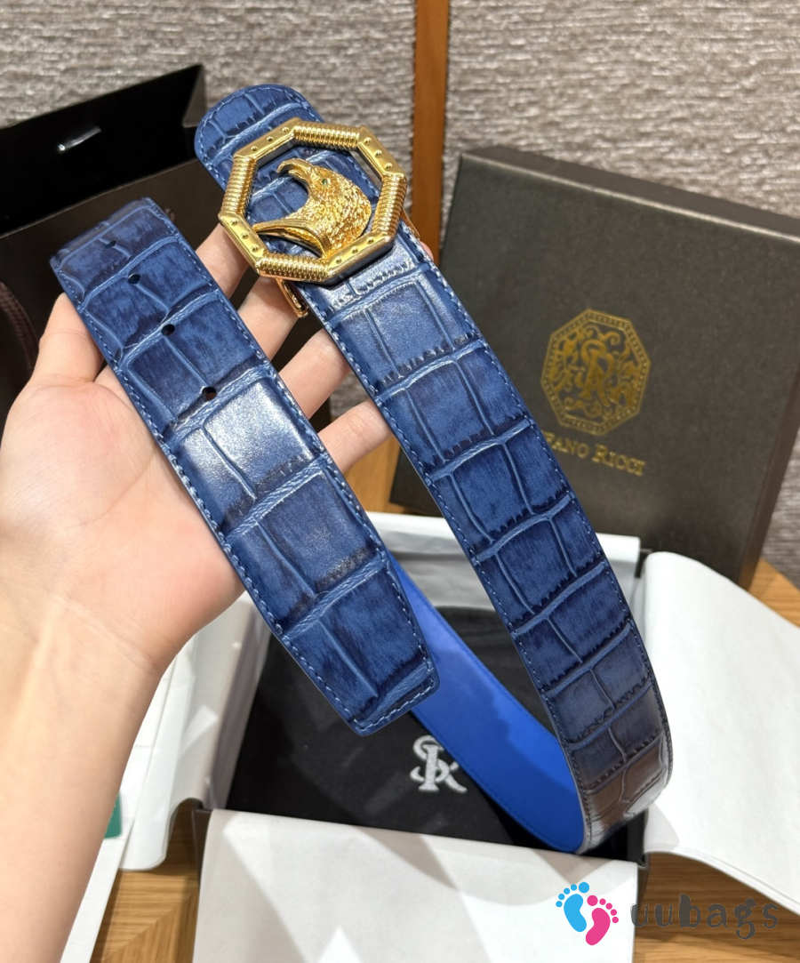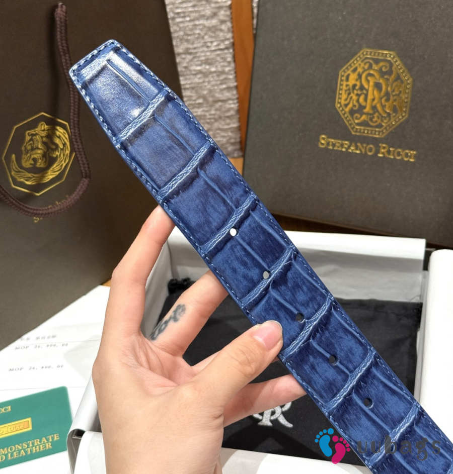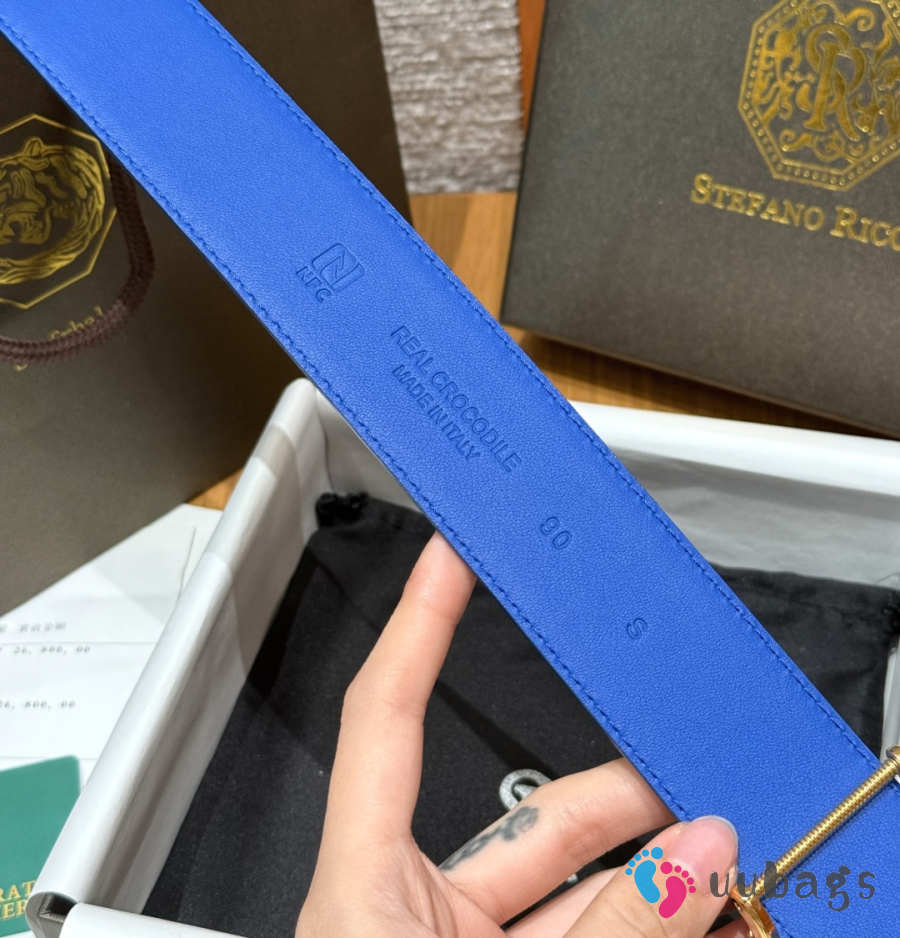 Uubags Stefano Ricci blue crocodile with gold buckle 3.8cm