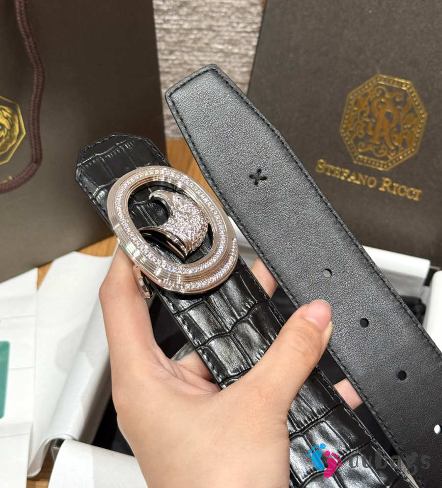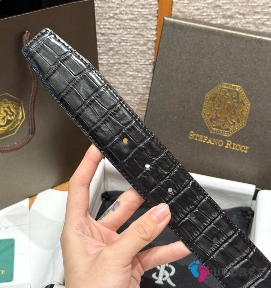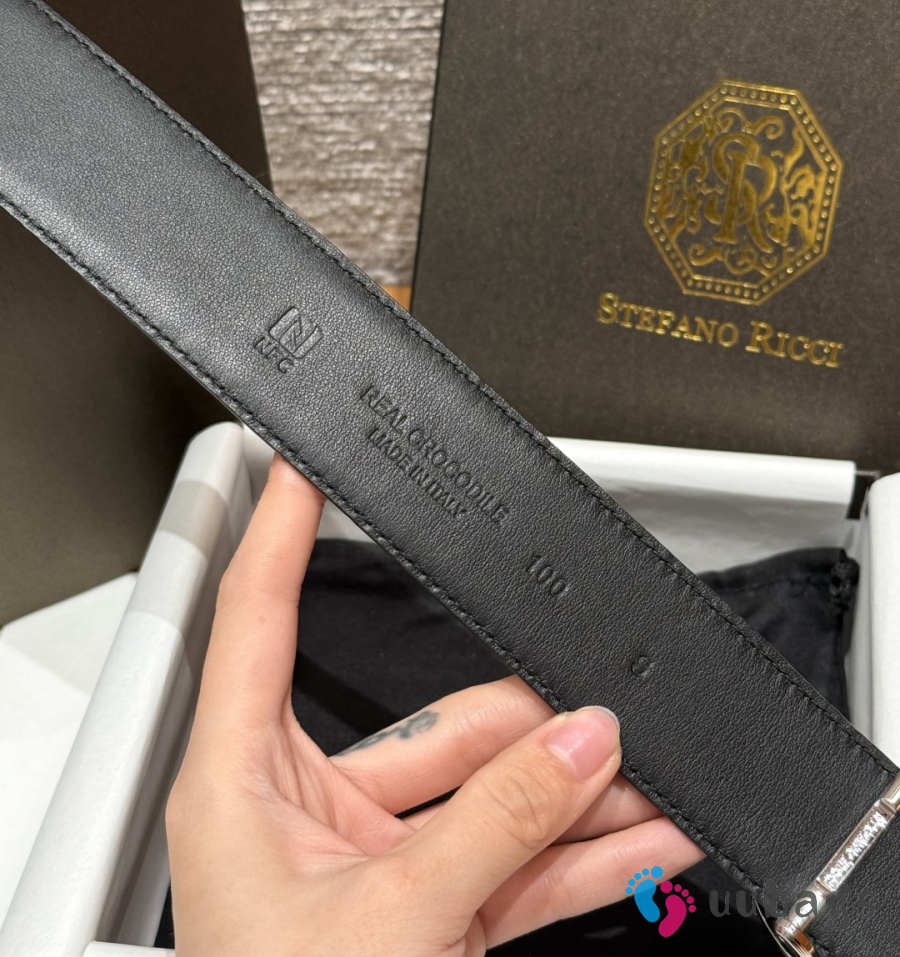 Uubags Stefano Ricci crocodile leather belt with silver buckle 3.8cm