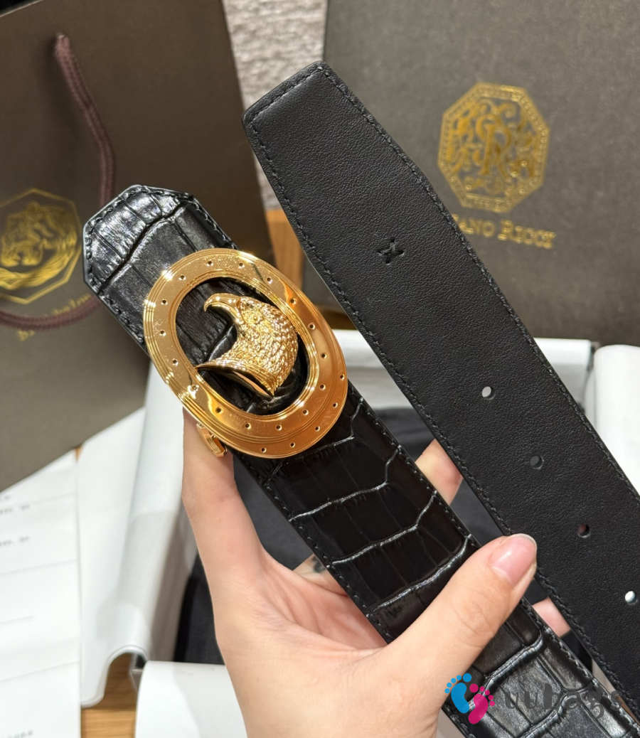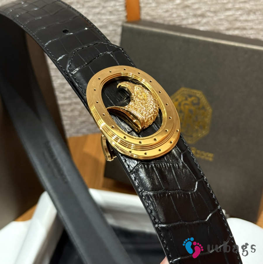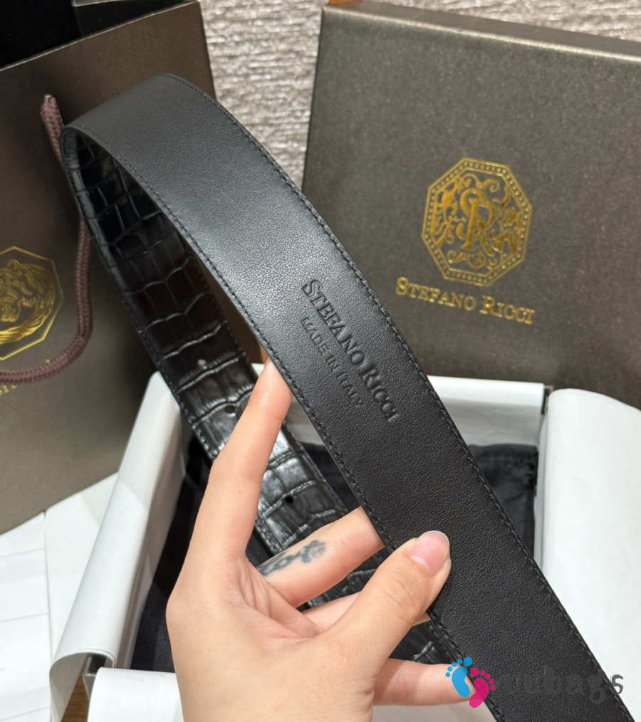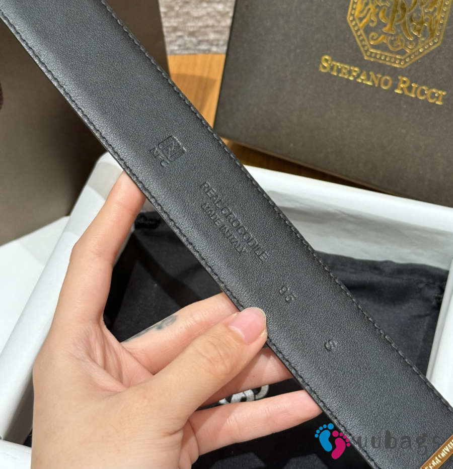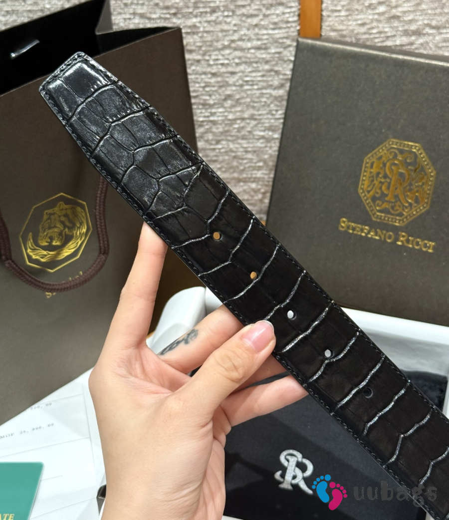 Uubags Stefano Ricci polished crocodile leather belt in black with gold hardware 3.8cm