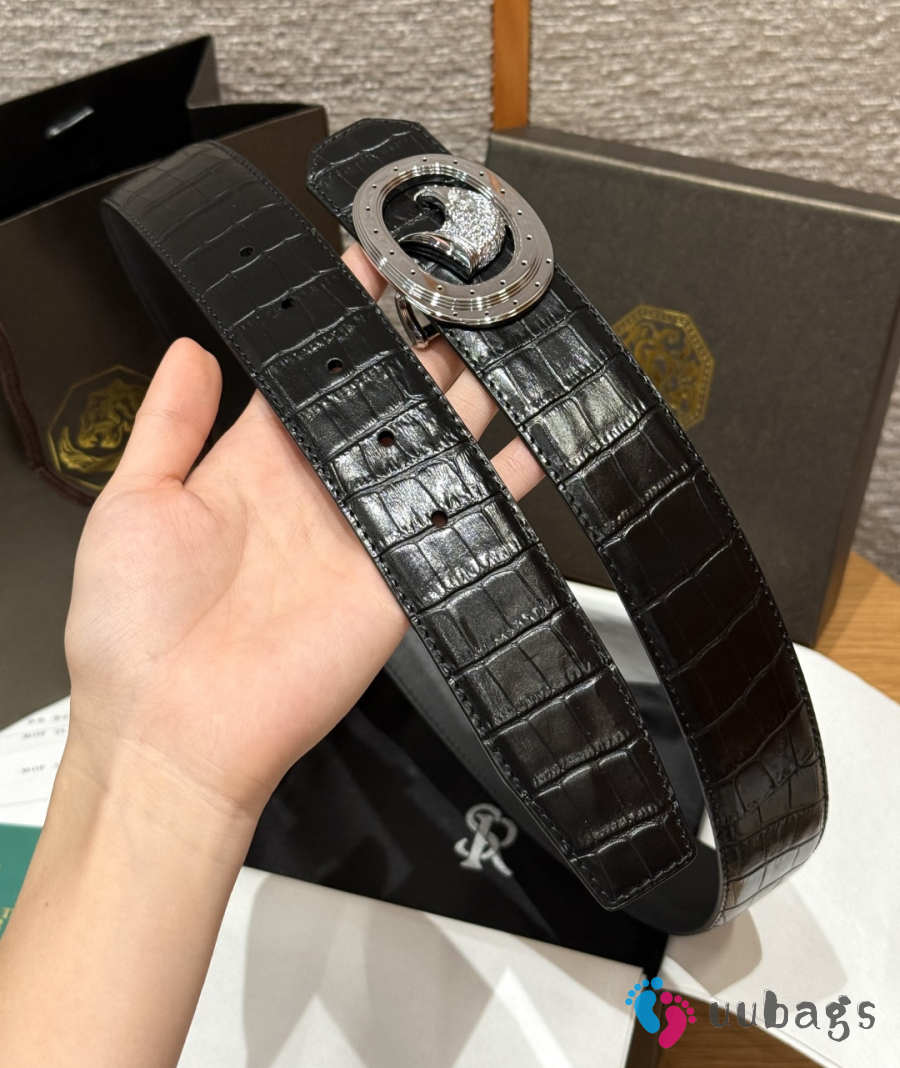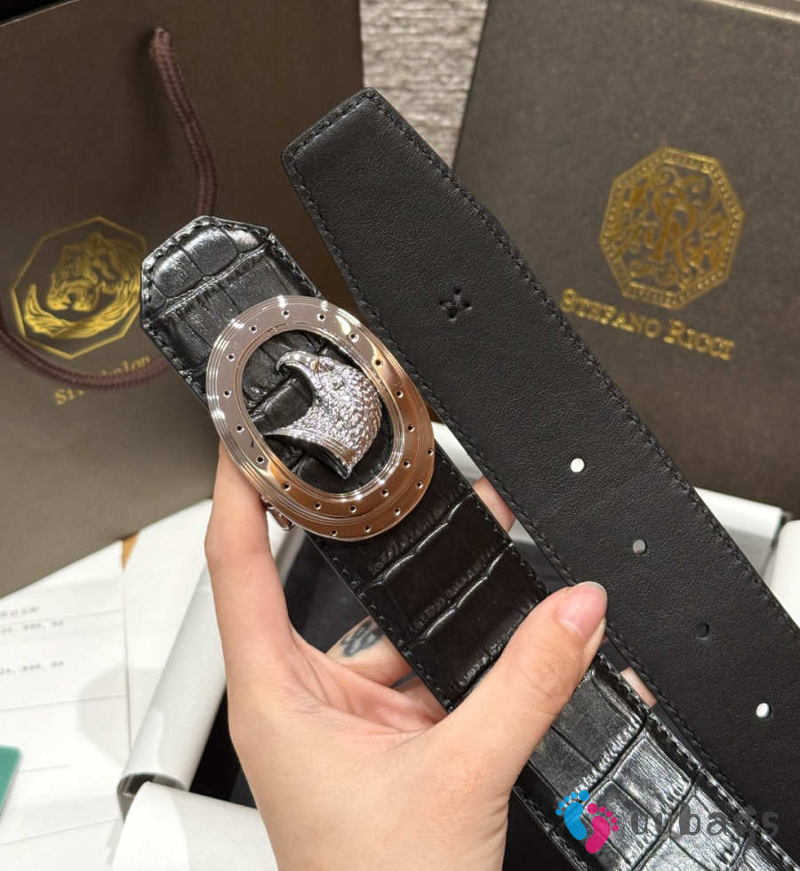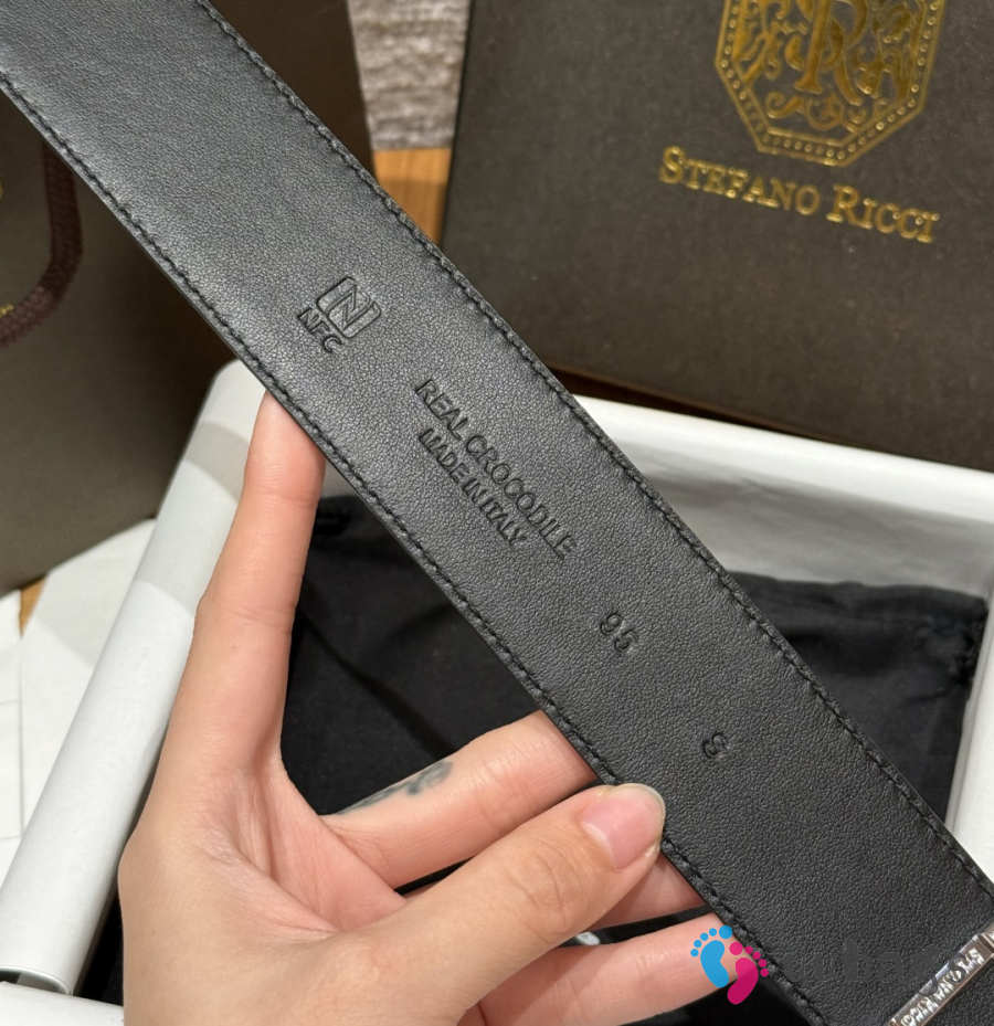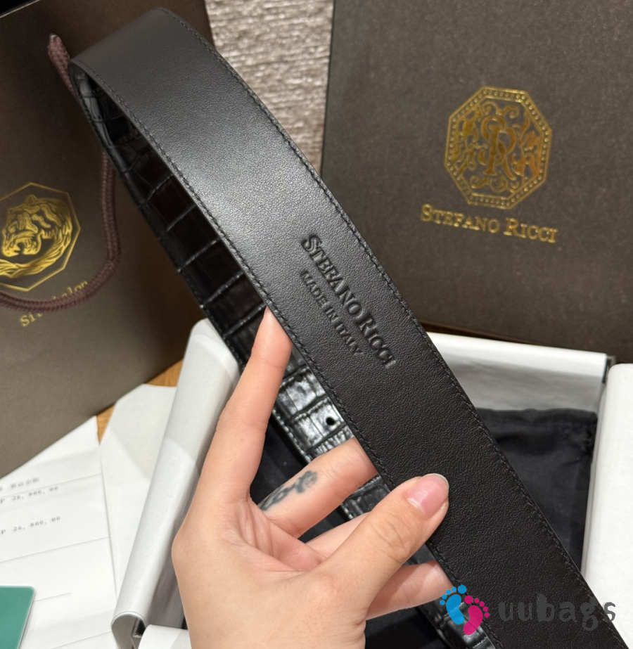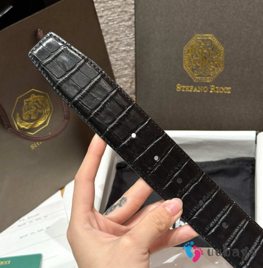 Uubags Stefano Ricci Matted black crocodile leather belt with silver buckle 3.8cm