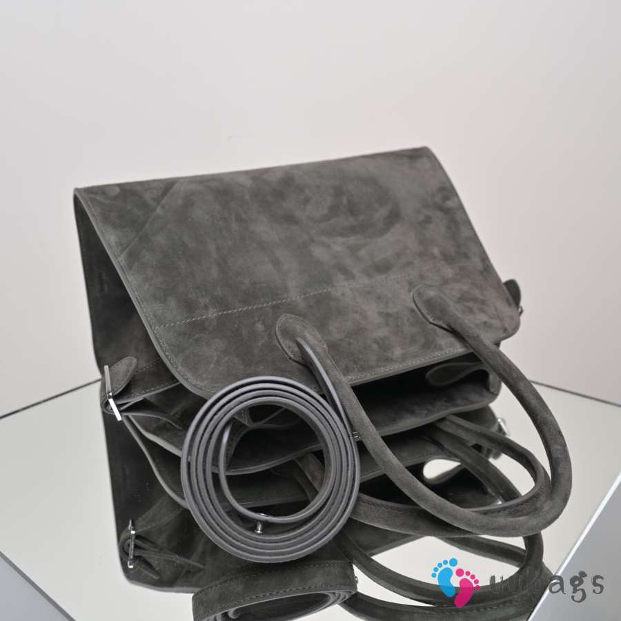 Uubags The Row Large Soft Margaux 15 Bag In Dark Grey Suede 38x28x23cm