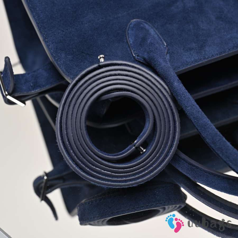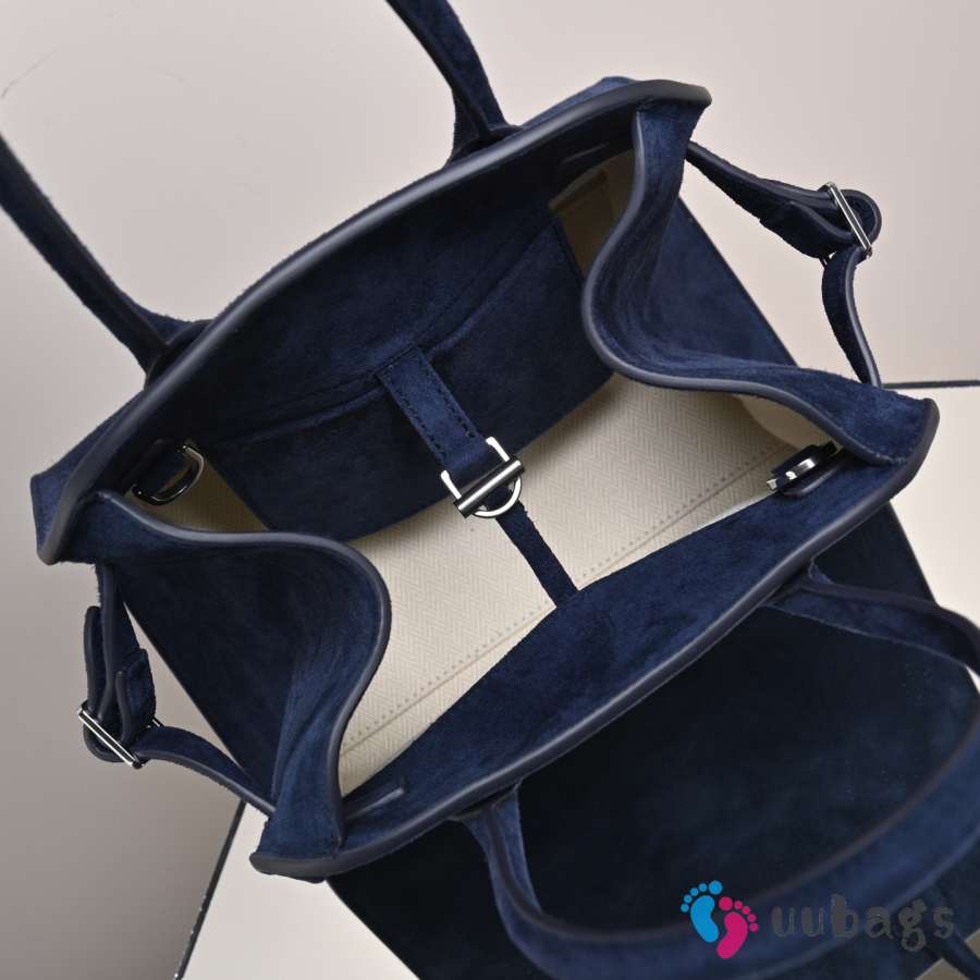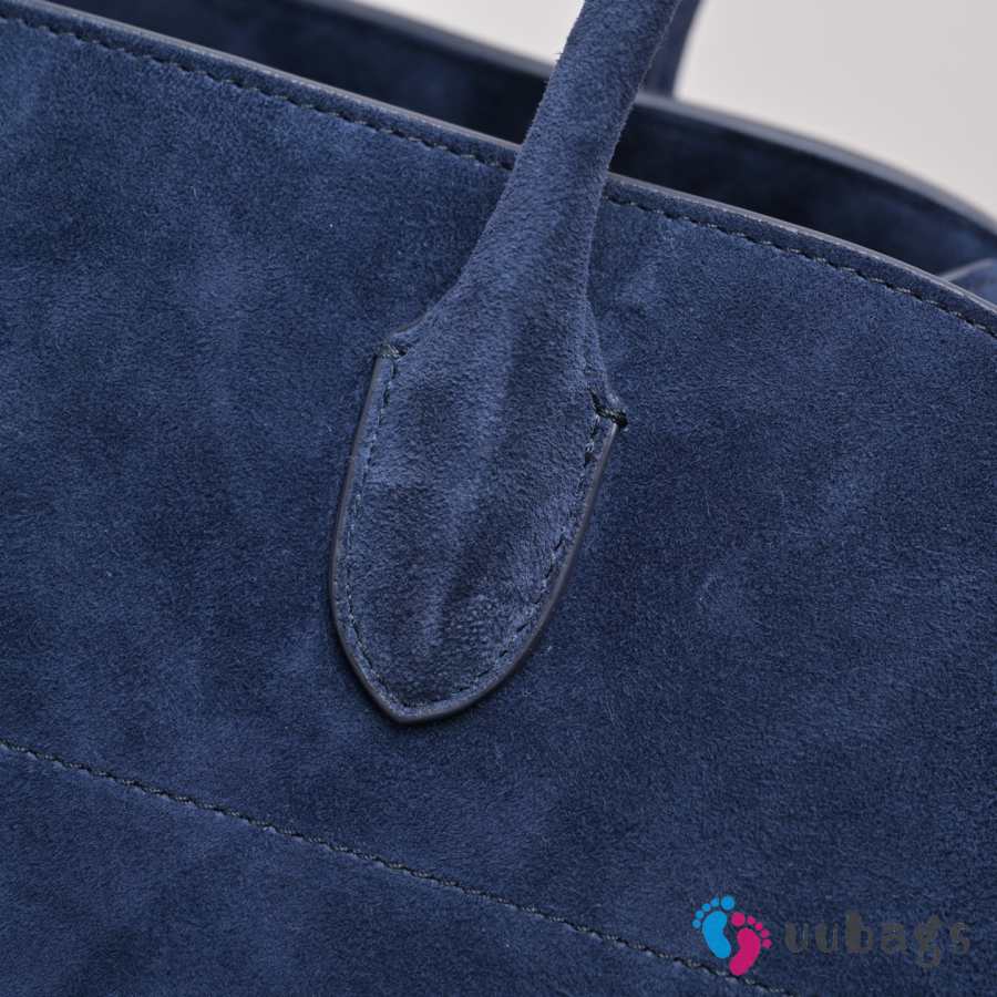 Uubags The Row Small Soft Margaux 10 Bag In Navy Blue Suede 25.5x18x19cm