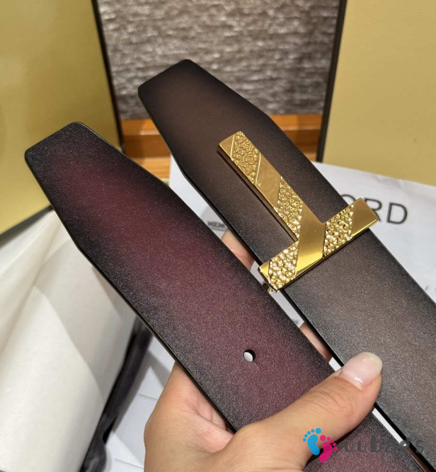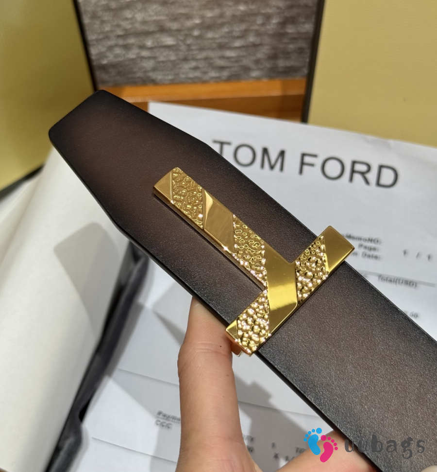 Uubags Tom Ford Man Ridge T Reversible Belt in Hammered Leather Brown 4cm