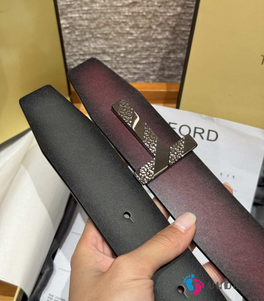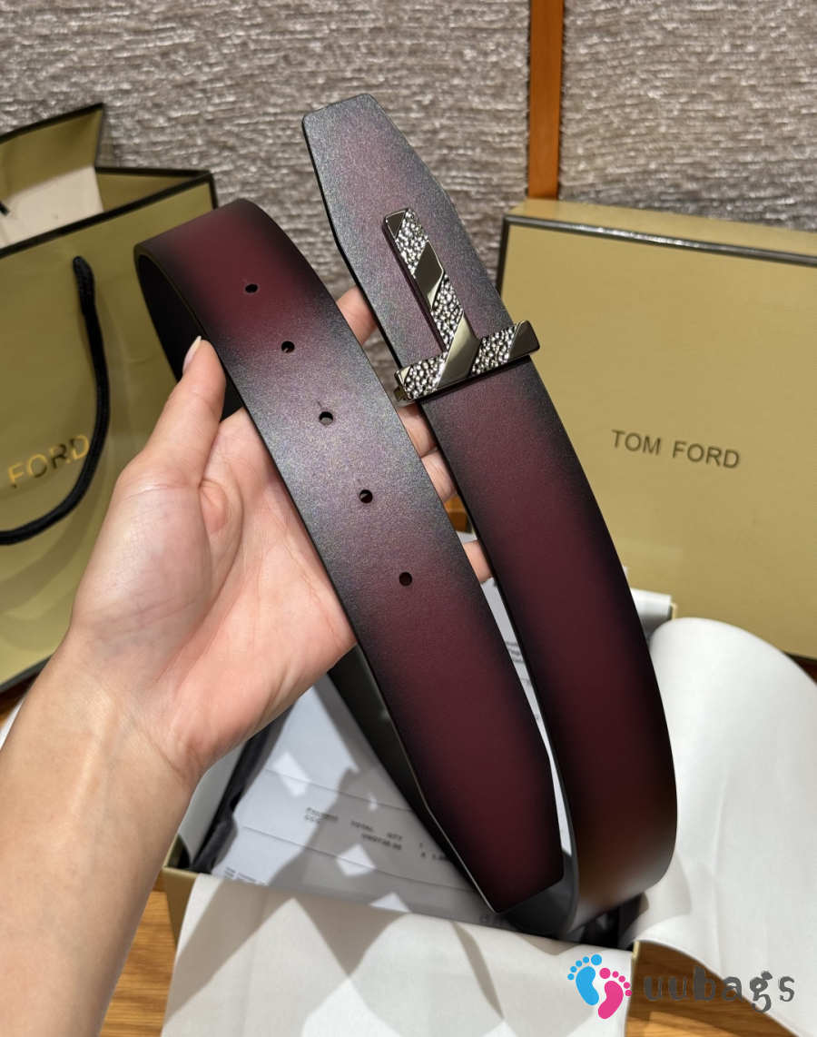 Uubags Tom Ford Man Ridge T Reversible Belt in Hammered Leather Burgundy 4cm