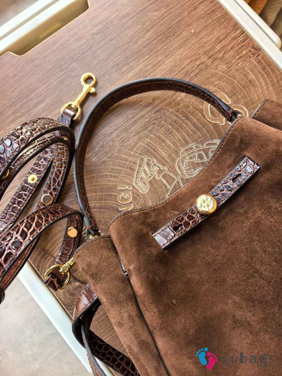 Uubags Tory Burch Romy Suede Bucket Bag In Dark Brown 22x21.5x9.5cm