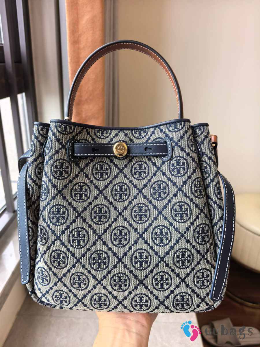 Uubags Tory Burch Romy T monogram bucket bag in tory navy 22x20x9.5cm