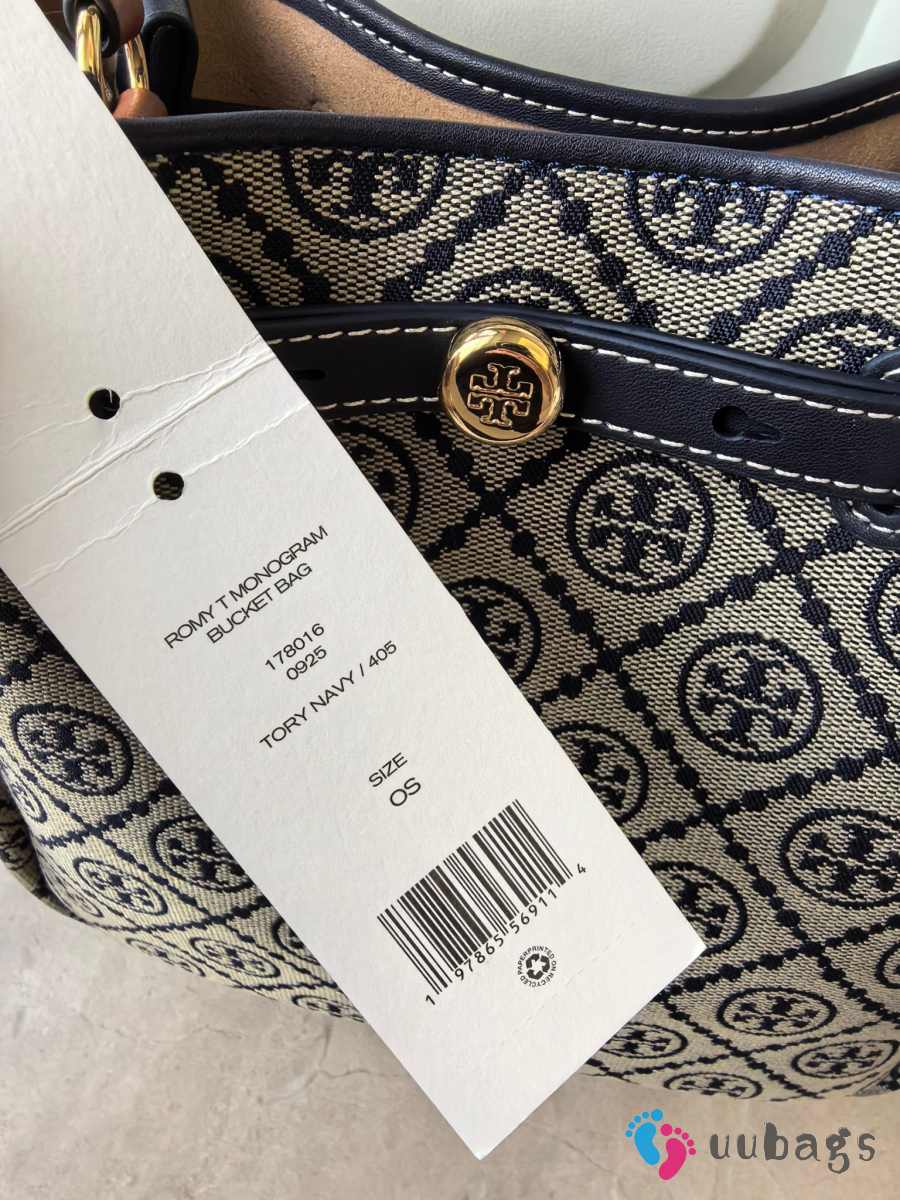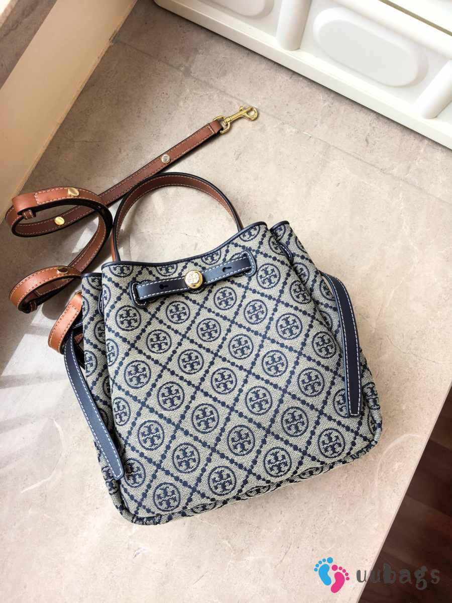 Uubags Tory Burch Romy T monogram bucket bag in tory navy 22x21.5x9.5cm