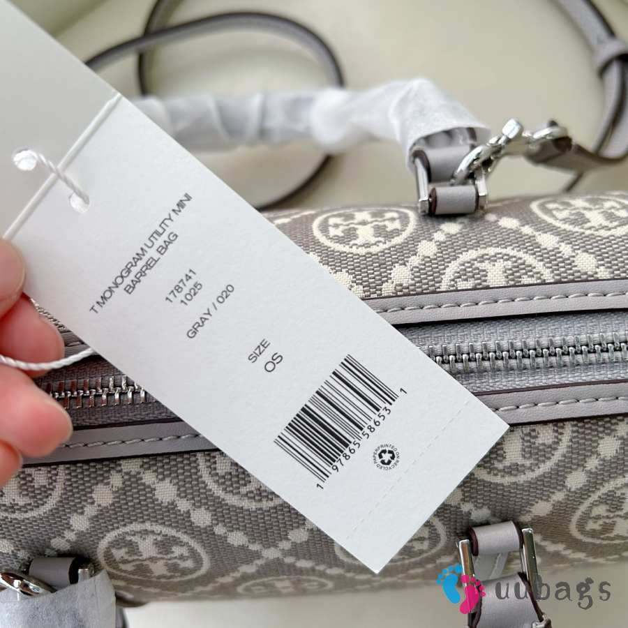 Uubags Tory Burch T Monogram Utility Mini Barrel Bag In Grey 20.5x12x9.5cm