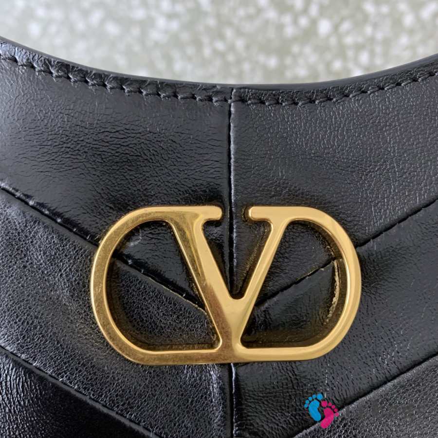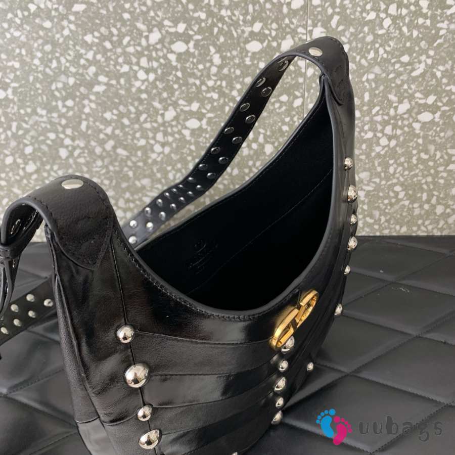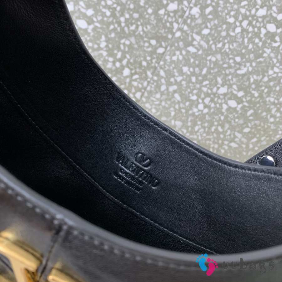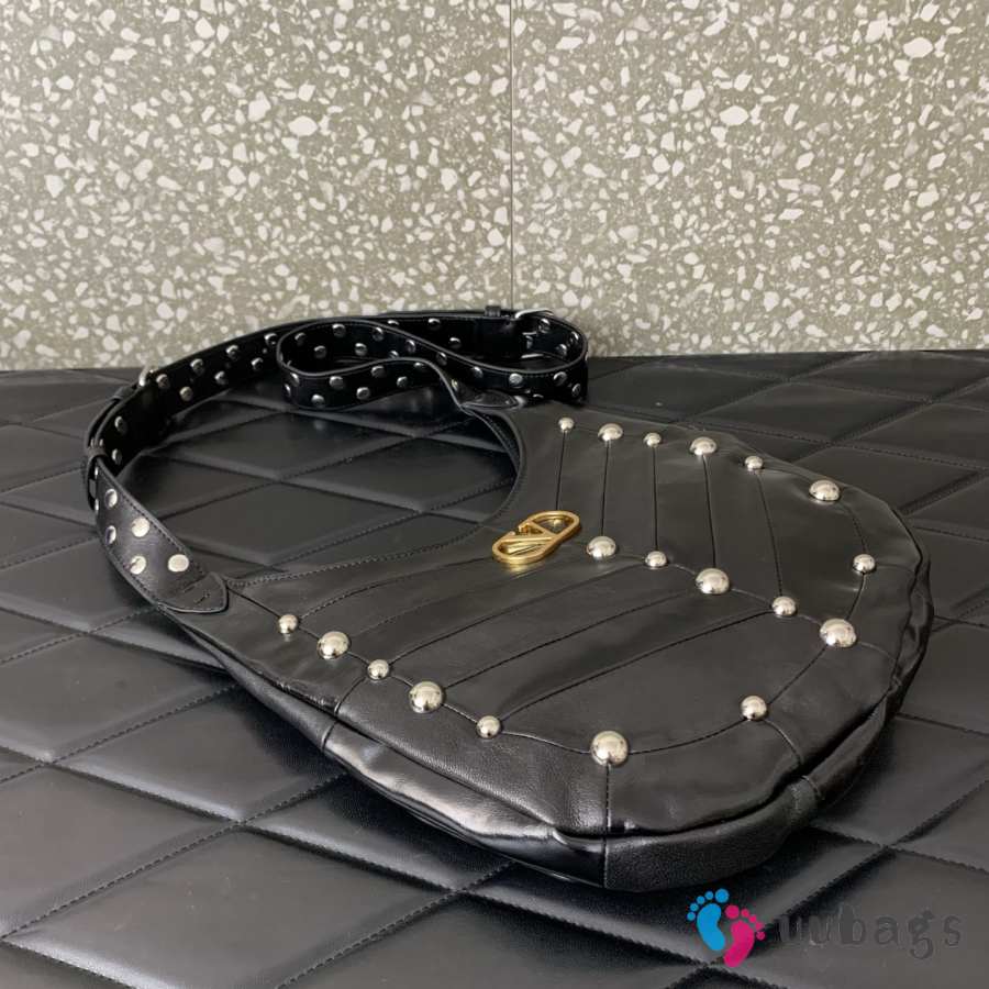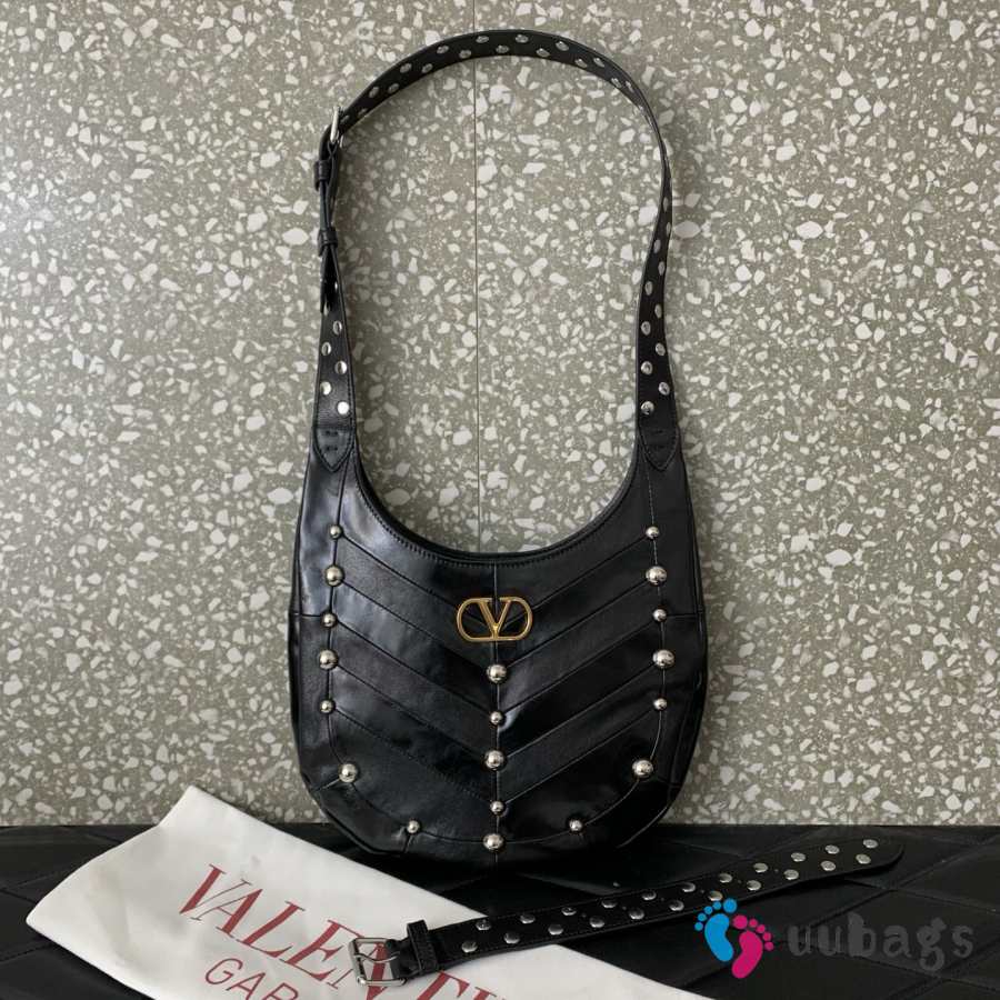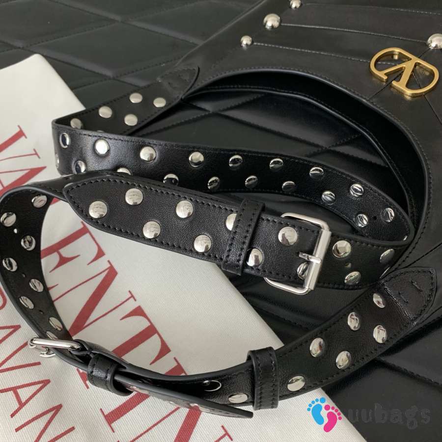 Uubags Valentino Garavani Black Hoboho Small Nappa Leather Hobo Bag With Chevron Pattern And Studs