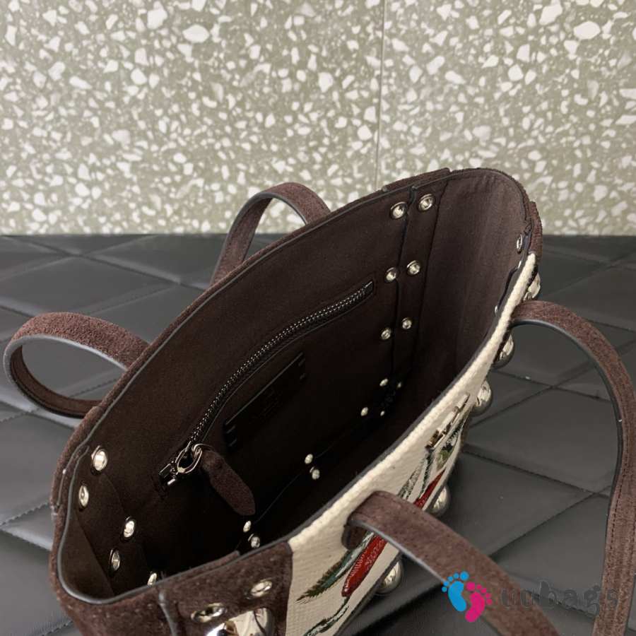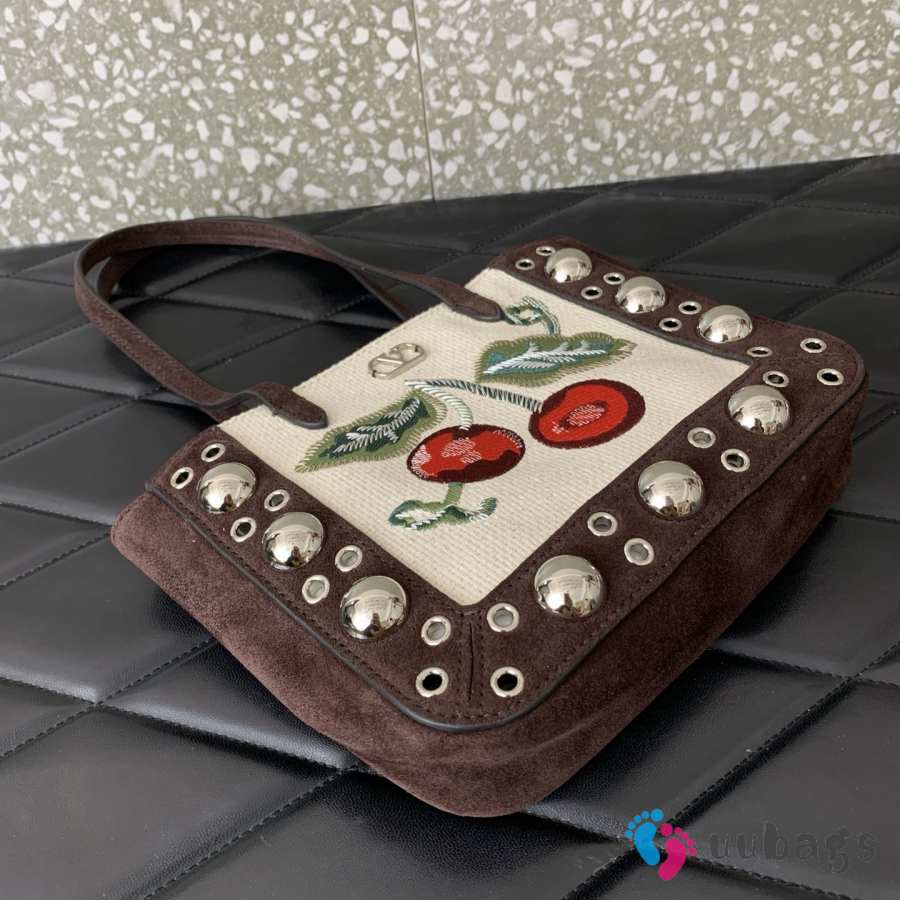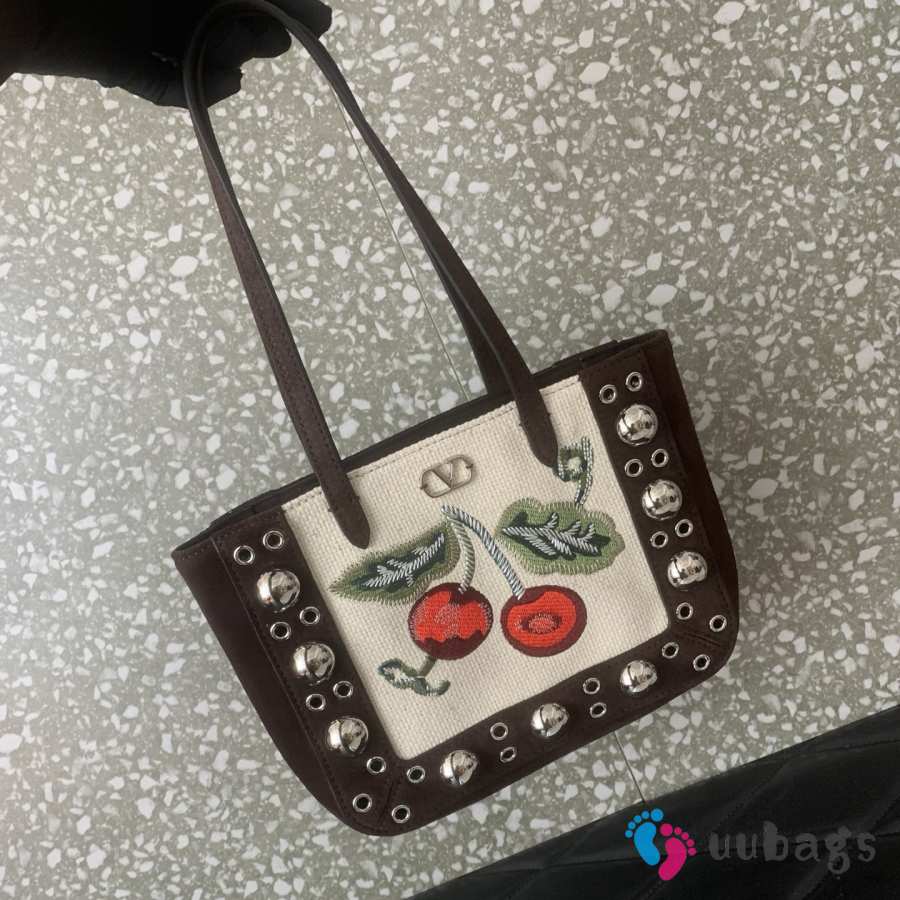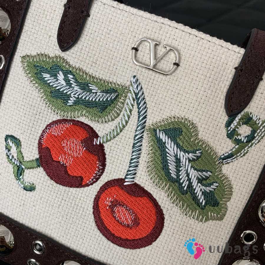 Uubags Valentino Garavani Nellcôte Mini Embroidered Shopping Bag In Brown/Multicolor 21x16x5cm