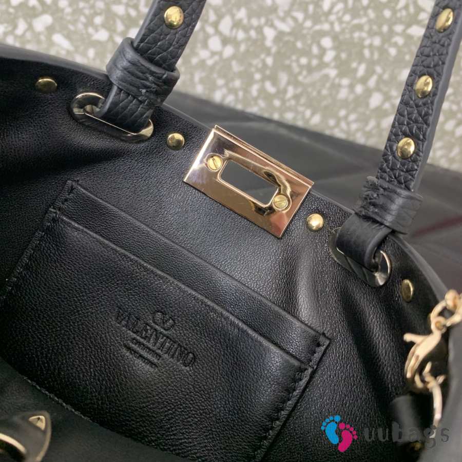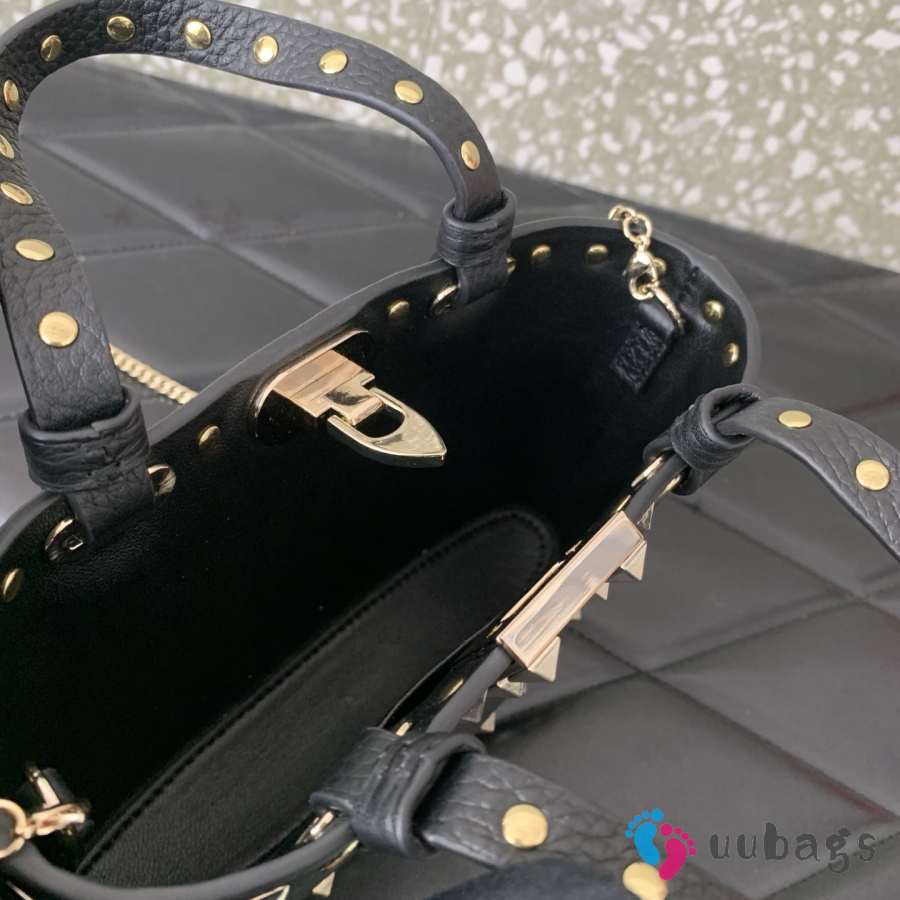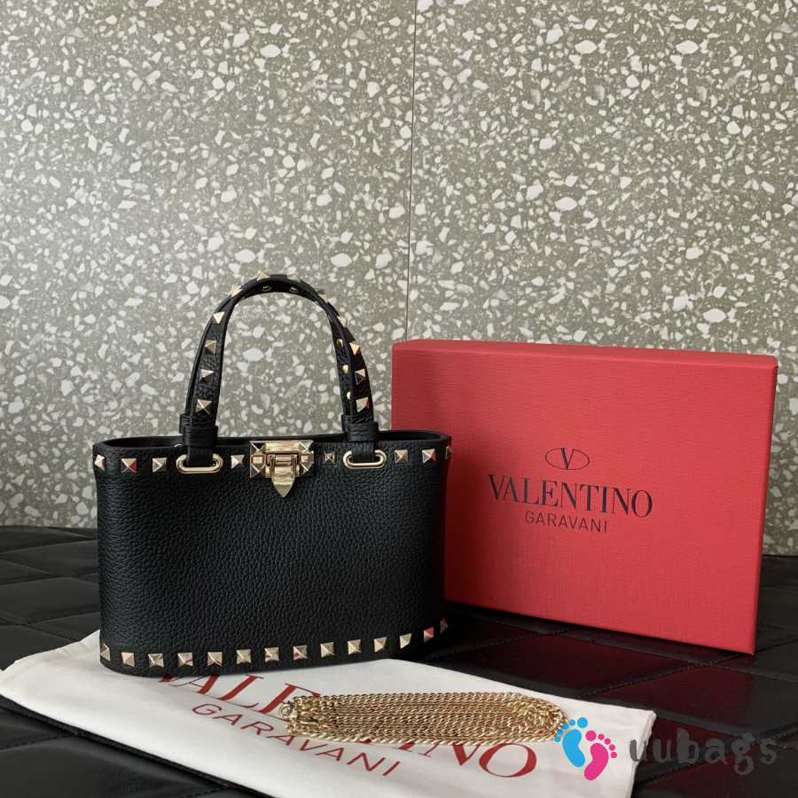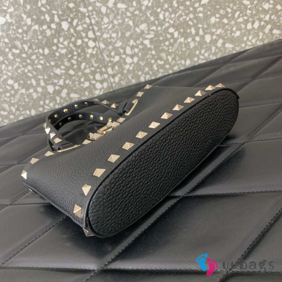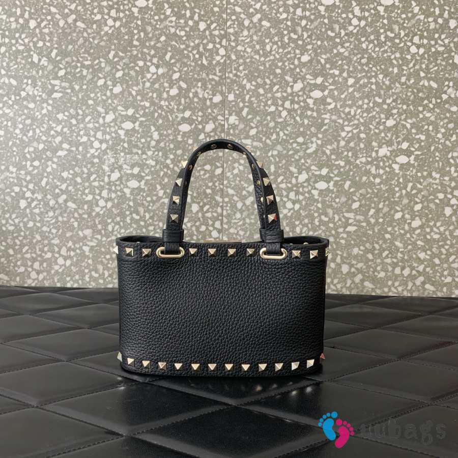 Uubags Valentino Garavani Rockstud Mini Shopping Bag In Black Grainy Calfskin 18.5x12.5x5.5cm