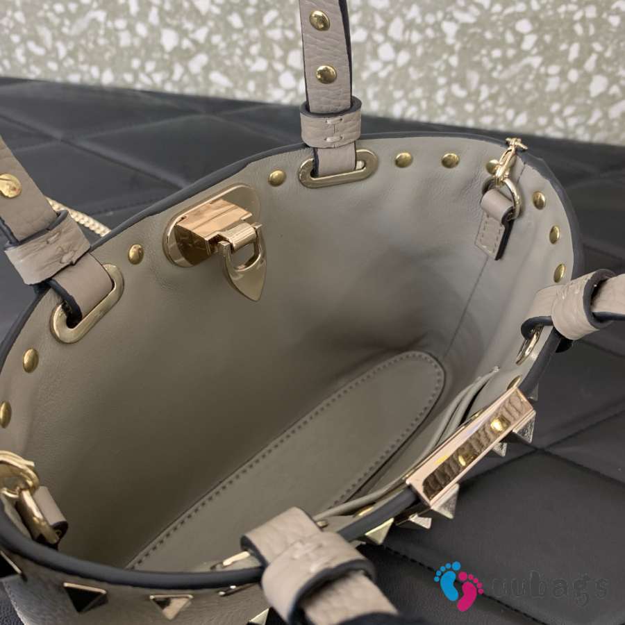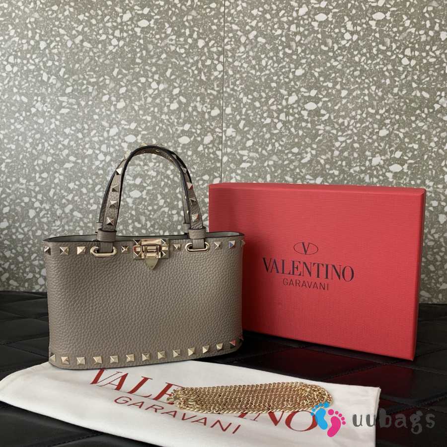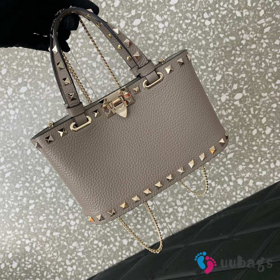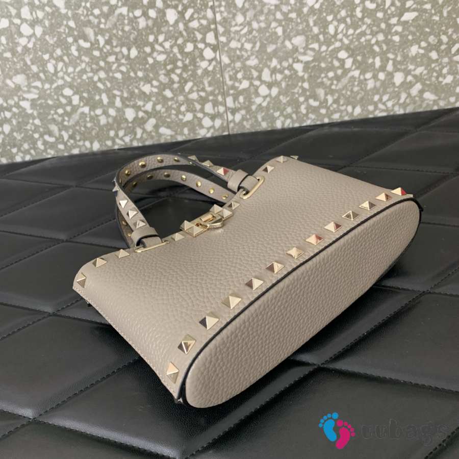 Uubags Valentino Garavani Rockstud Mini Shopping Bag In Grey Grainy Calfskin 18.5x12.5x5.5cm
