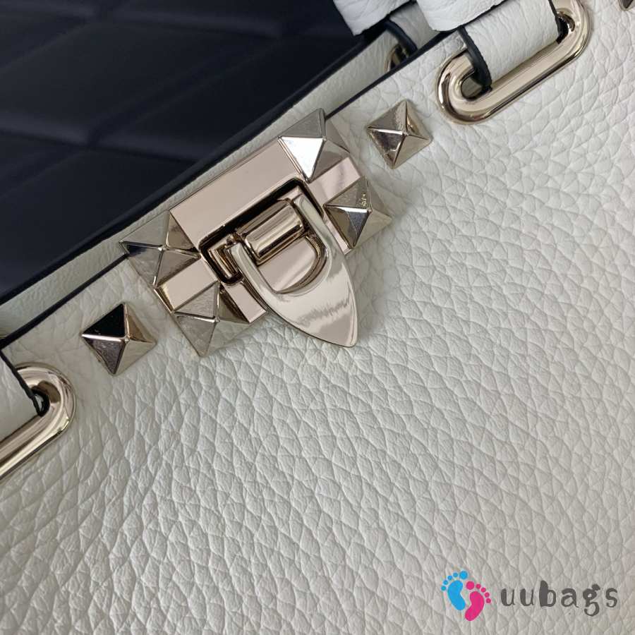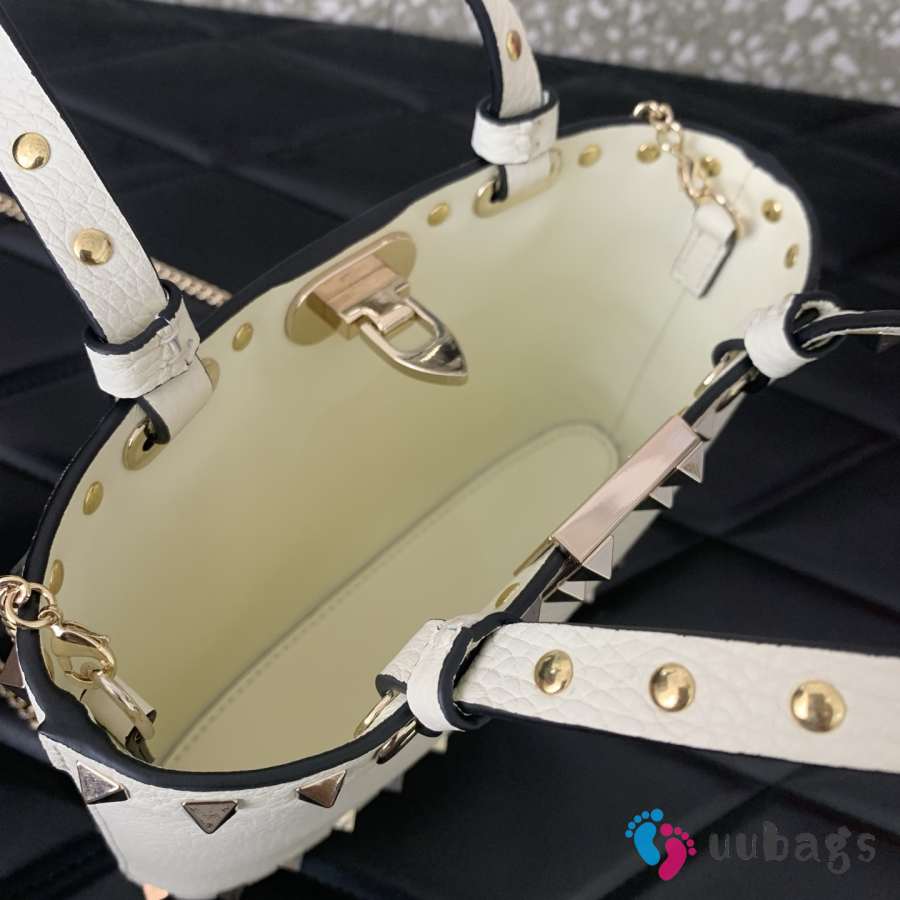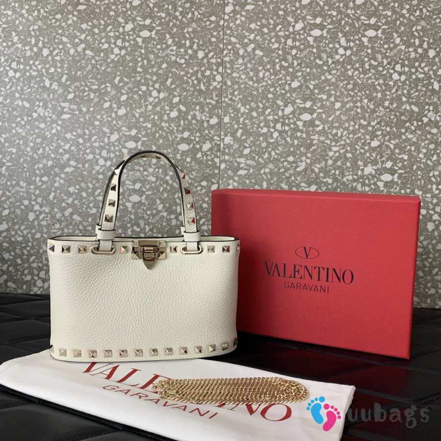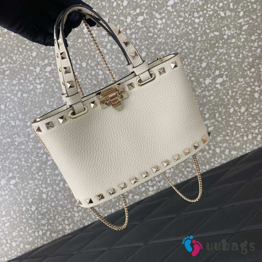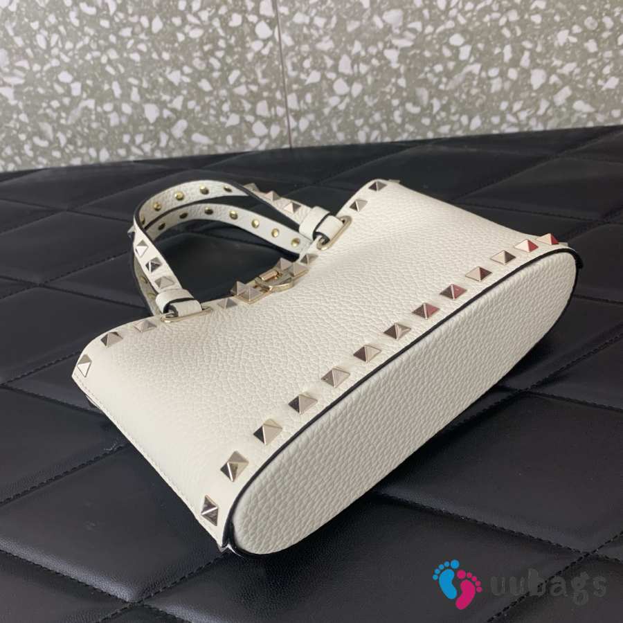 Uubags Valentino Garavani Rockstud Mini Shopping Bag In White Grainy Calfskin 18.5x12.5x5.5cm
