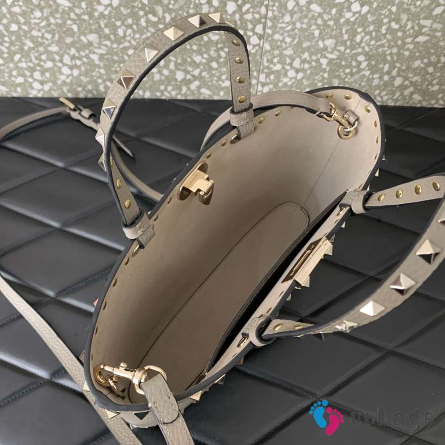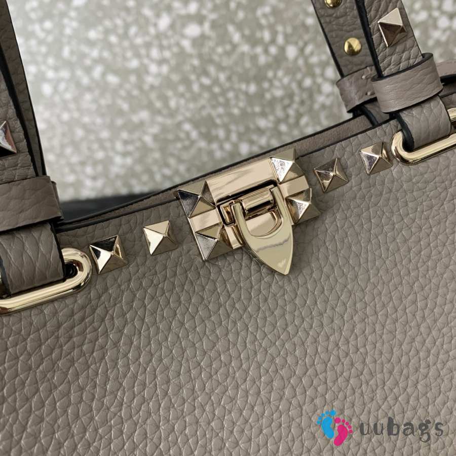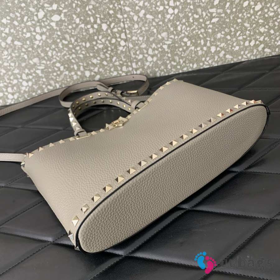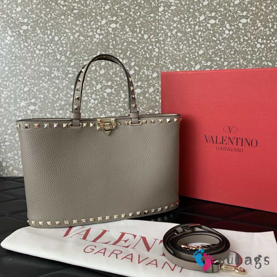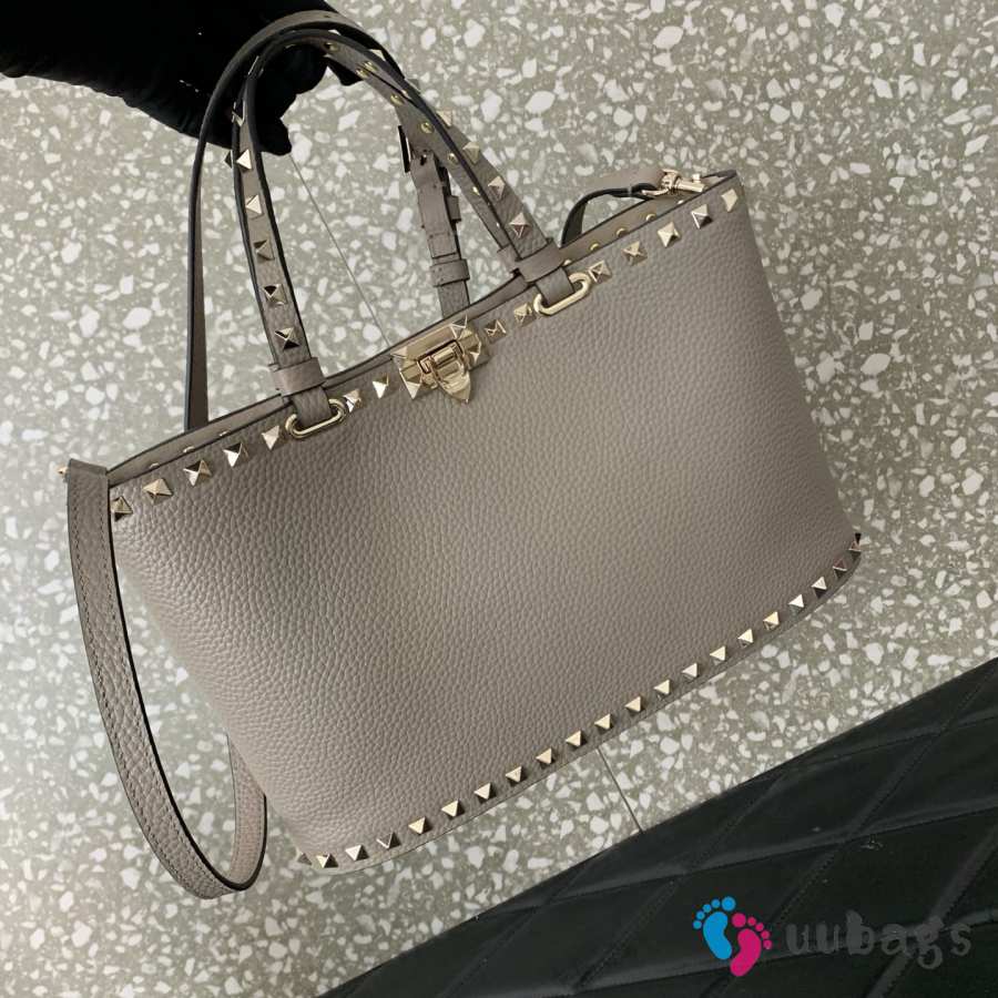 Uubags Valentino Garavani Rockstud Small Shopping Bag In Grey Grainy Calfskin 28x18.5x7cm