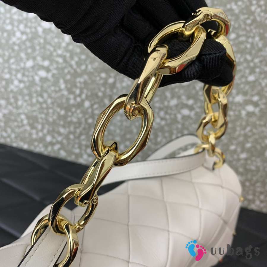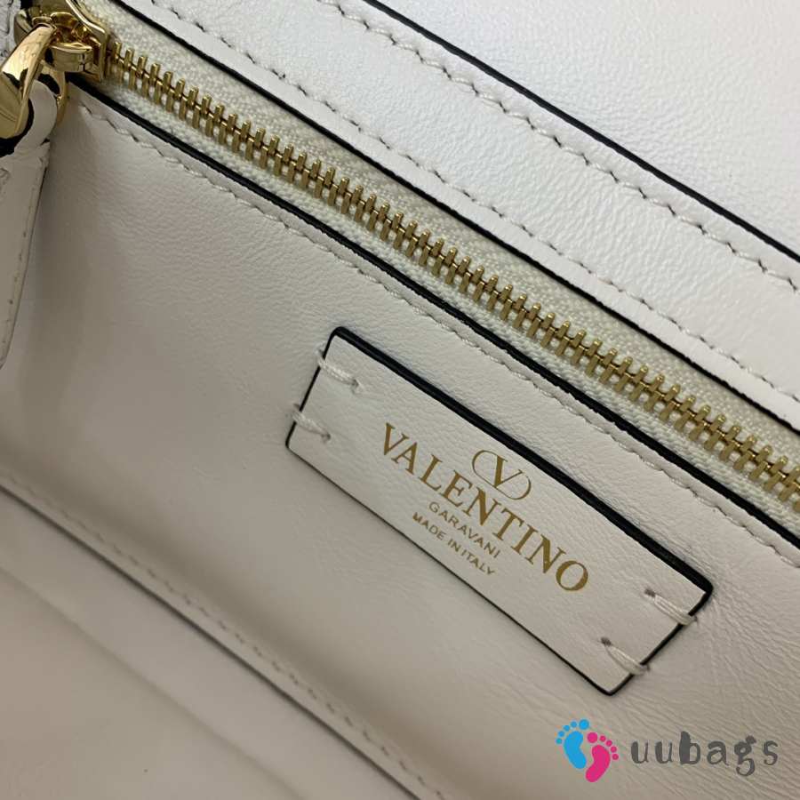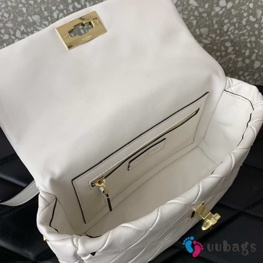 Uubags Valentino Garavani Rockstud Spike shoulder bag in white calf leather with gold-tone hardware 23x17x7cm