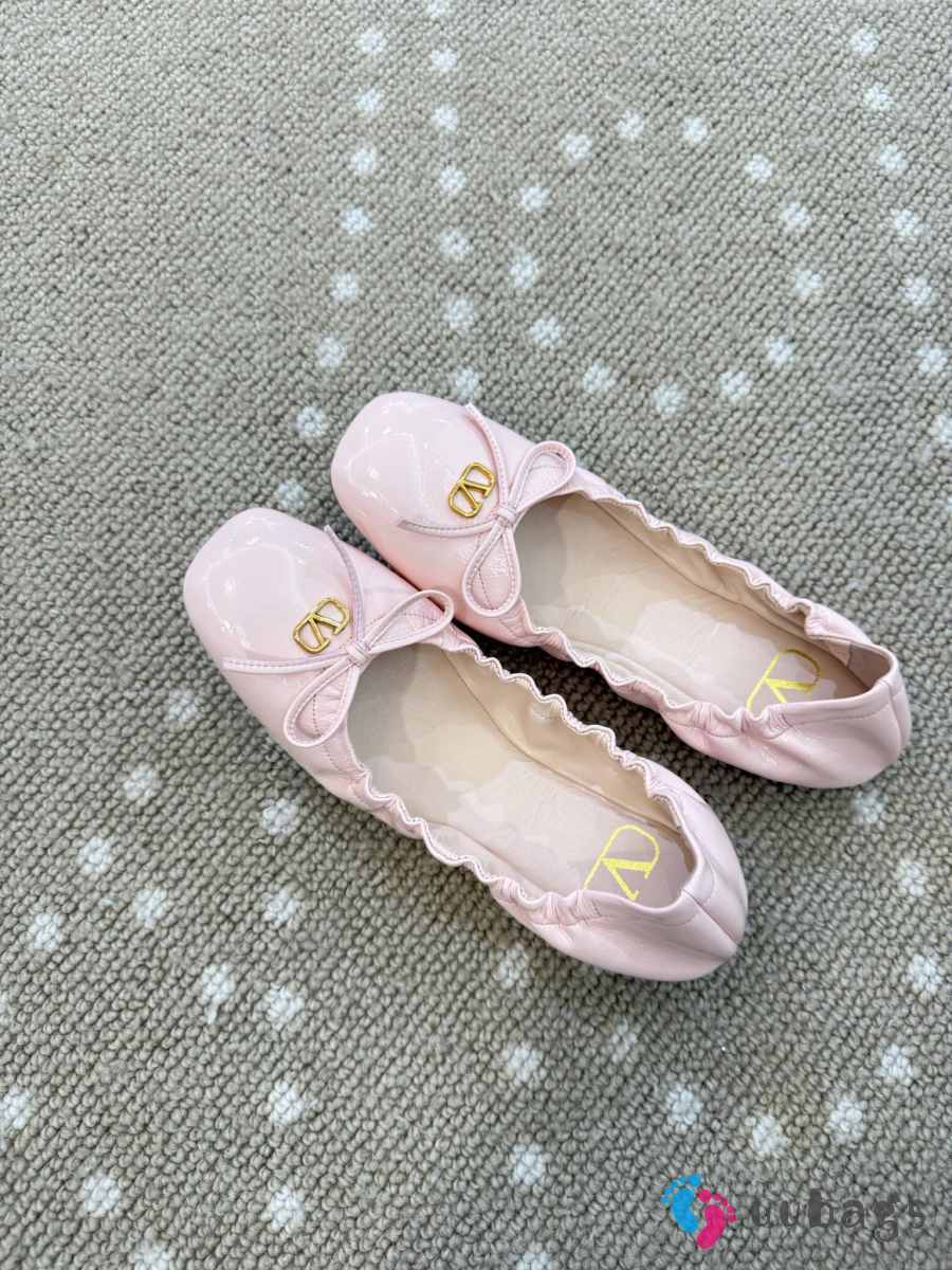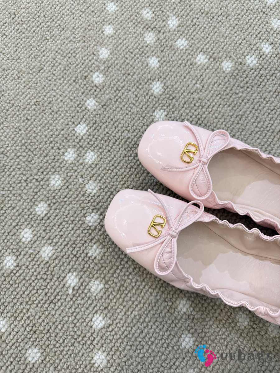 Uubags Valentino Garavani VLogo Signature Ruched Slip-On Ballerina Light Pink