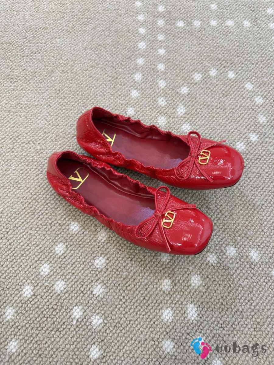 Uubags Valentino Garavani VLogo Signature Ruched Slip-On Ballerina Red