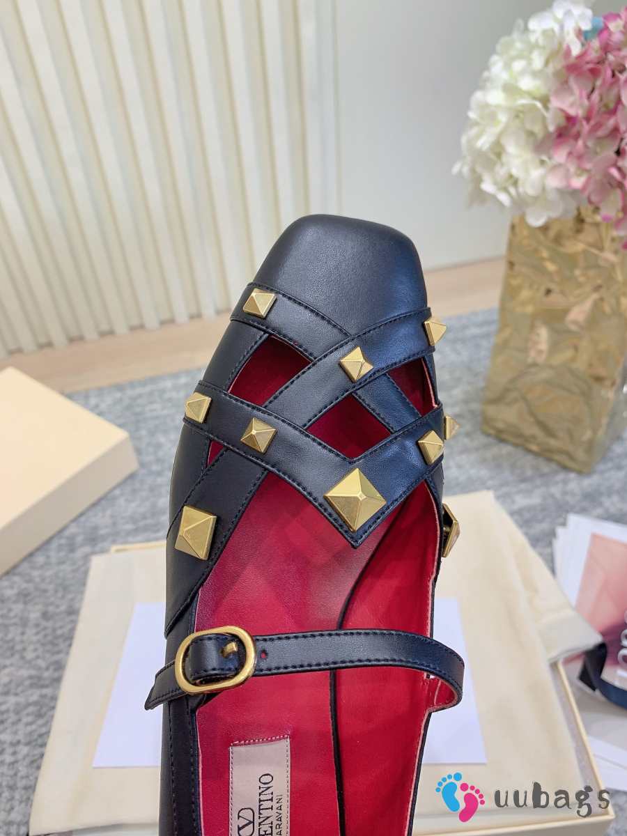 Uubags Valentino Studdy Mary Jane Ballet Shoes In Black