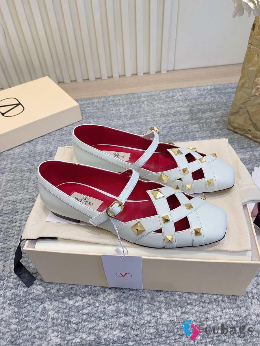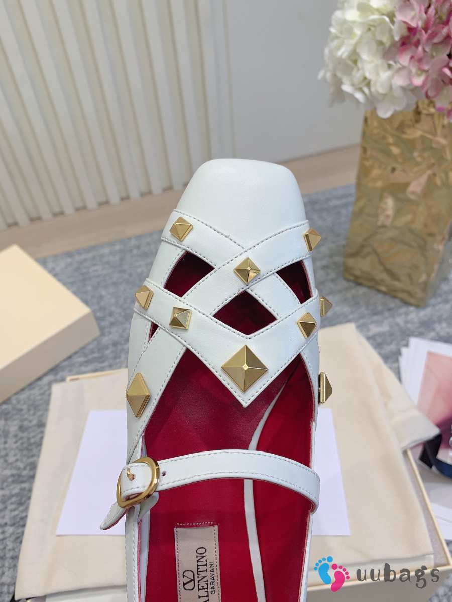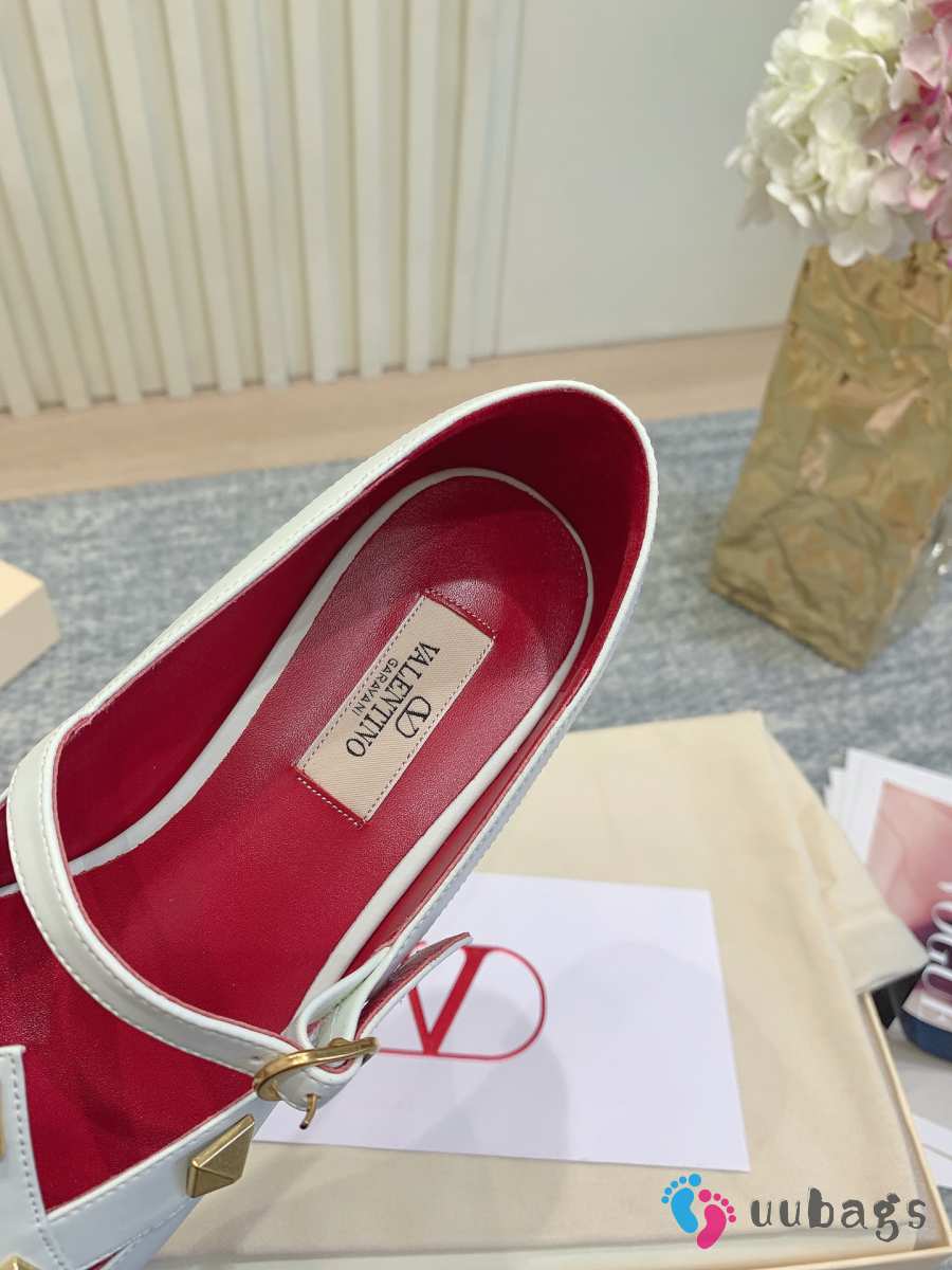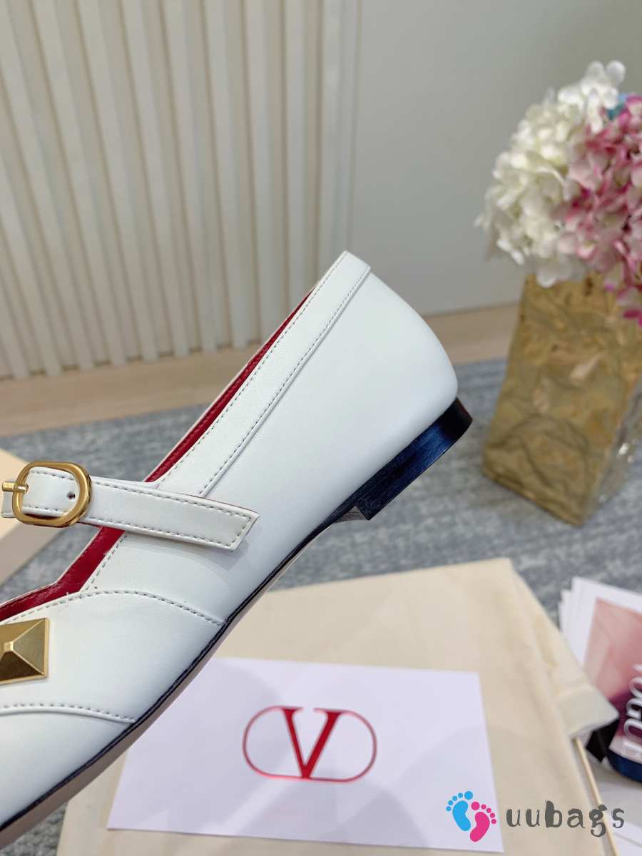 Uubags Valentino Studdy Mary Jane Ballet Shoes In White