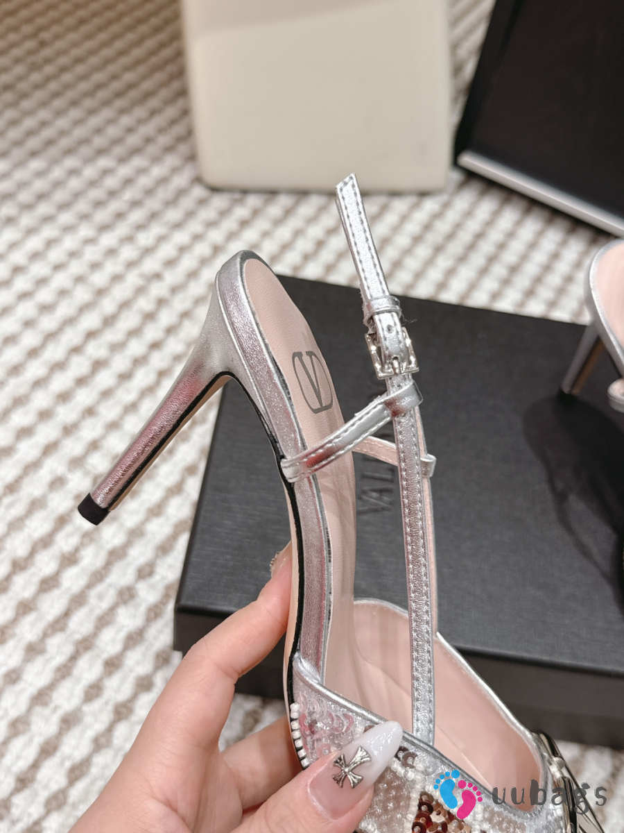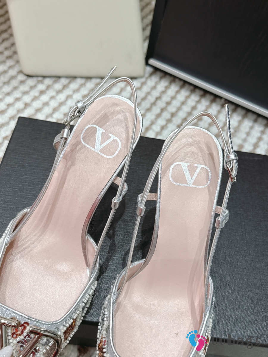 Uubags Valentino VLogo Signature Slingback Décolleté With Rhombelle Embroidery In Platinum 8.5cm