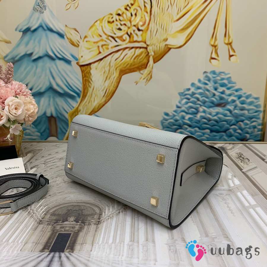 Uubags Valextra Iside top handle mini bag in stone grey 12x16x22cm