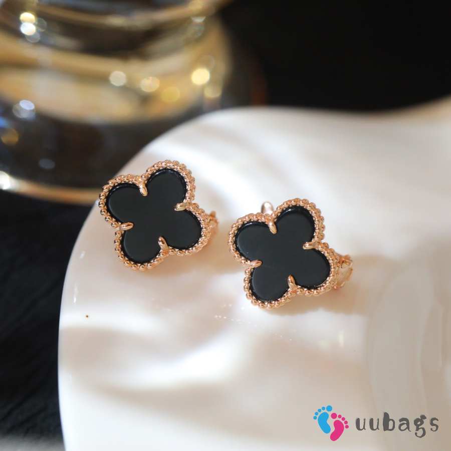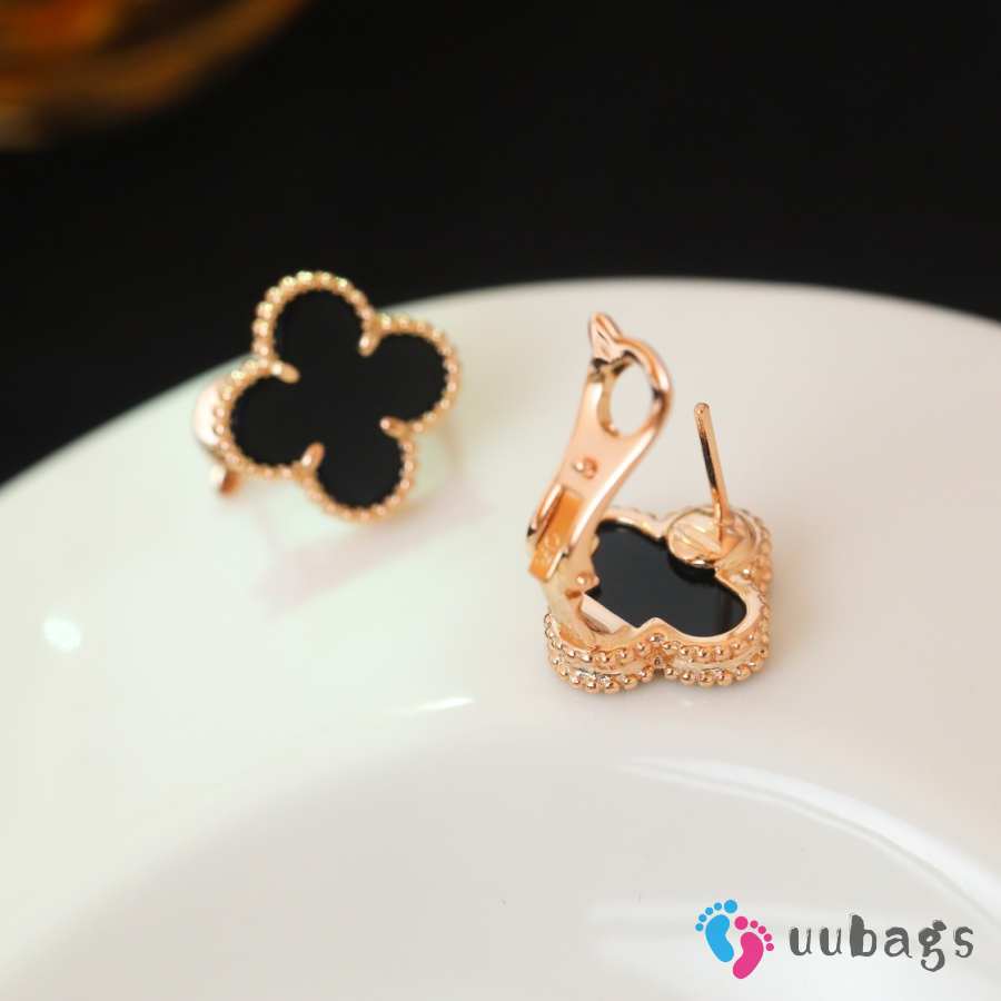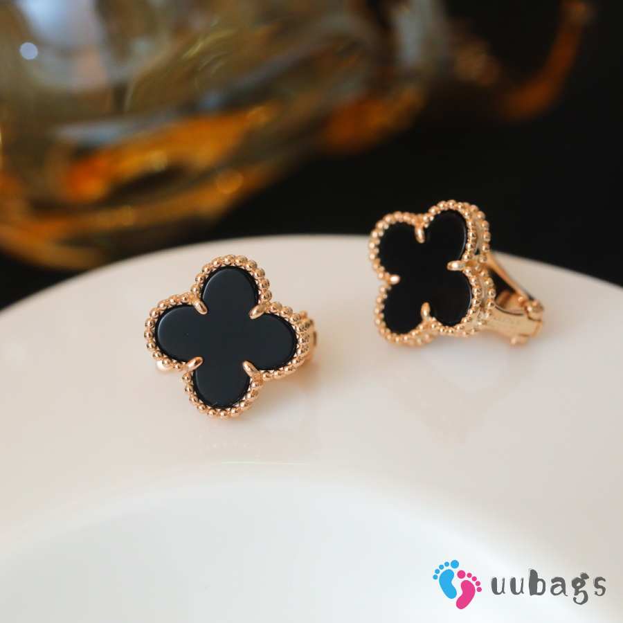 Uubags Van Cleef & Arpels Vintage Alhambra Earrings Yellow Gold & Onyx