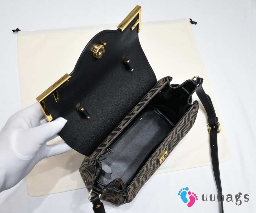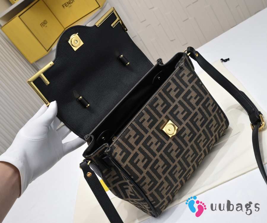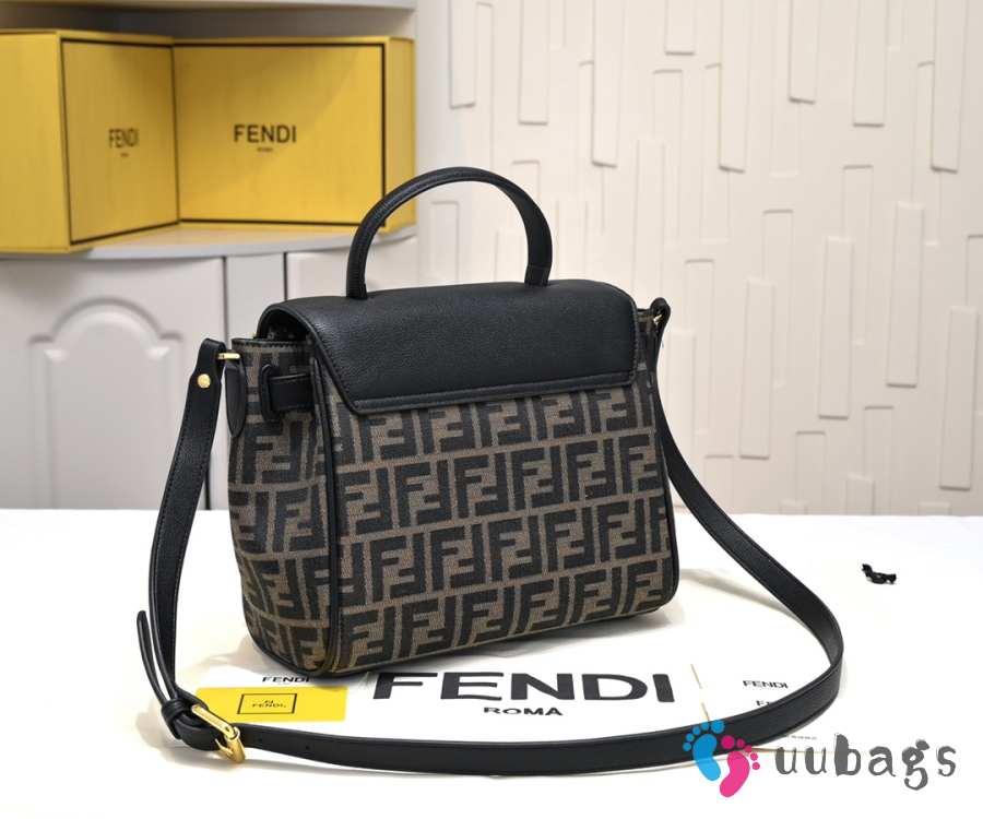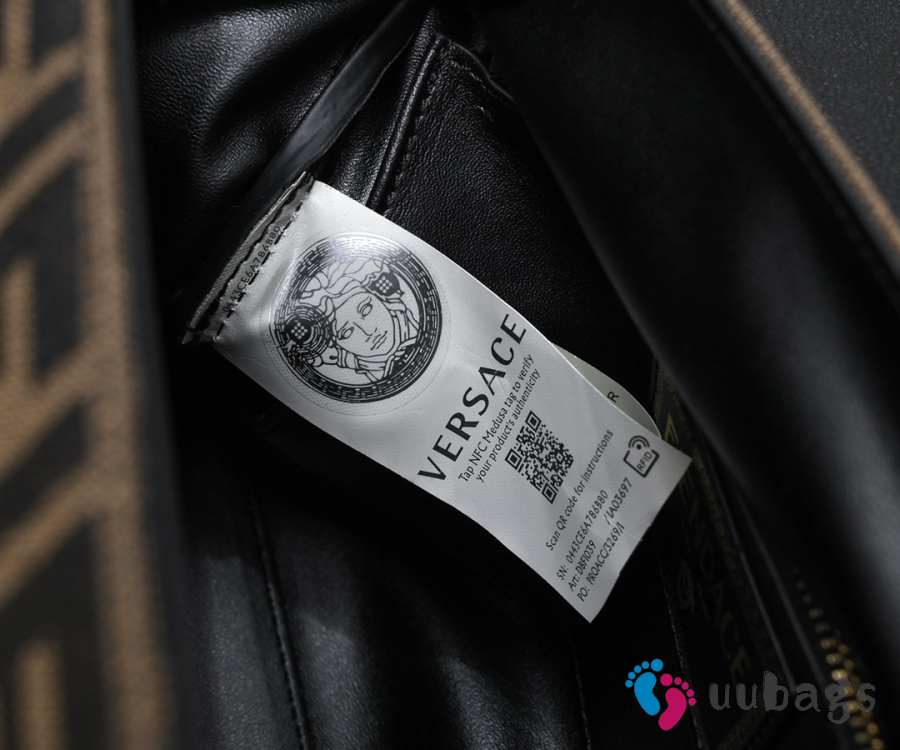 Uubags Versace x Fendi Grained Calfskin Fendace Medium La Medusa Top Handle Bag Black Brown 25x15x22cm