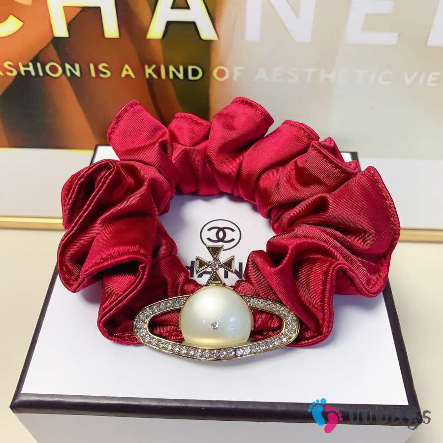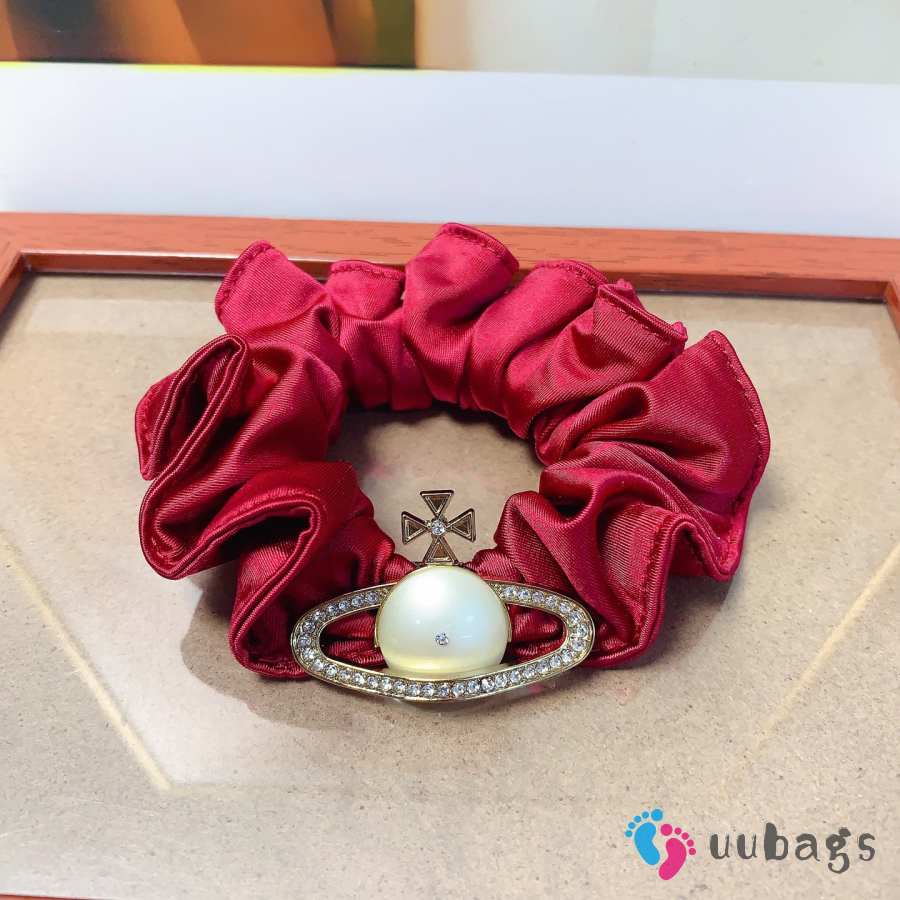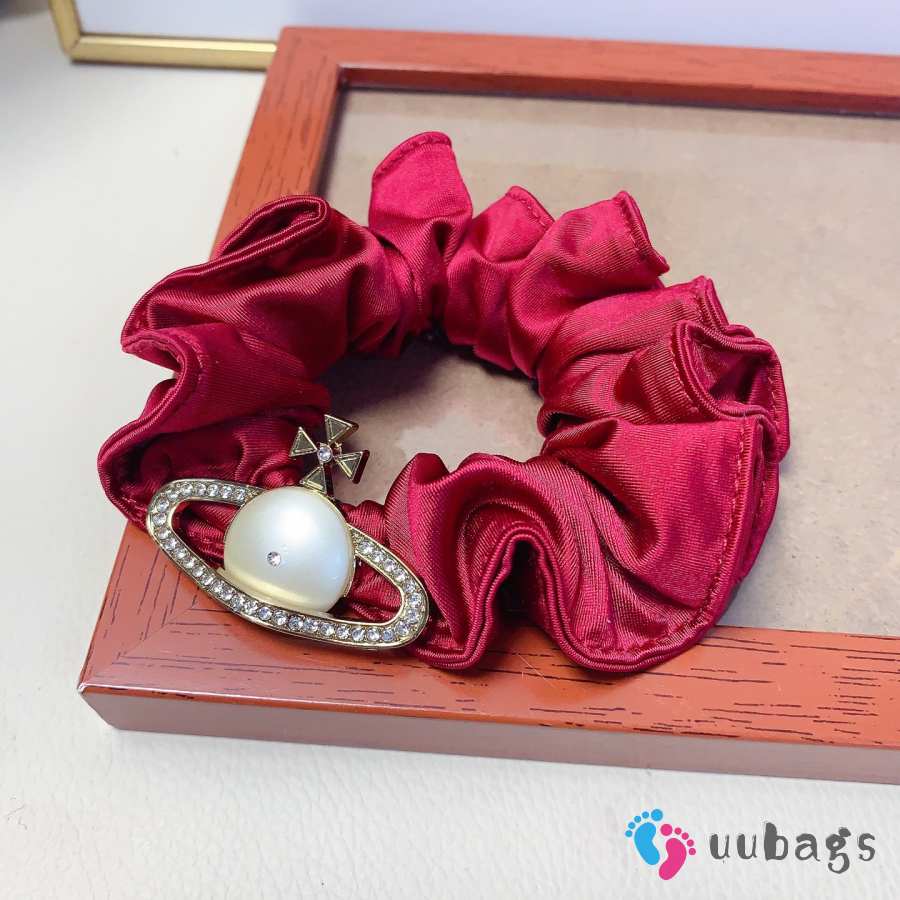 Uubags Vivienne Westwood Red Satin Scrunchie with Saturn Pearl Charm