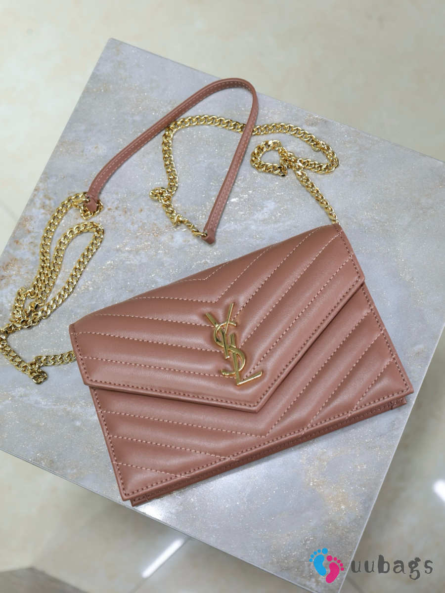 Uubags YSL Cassandre Envelope chain wallet in barely pink lambskin 22.5x14x4cm
