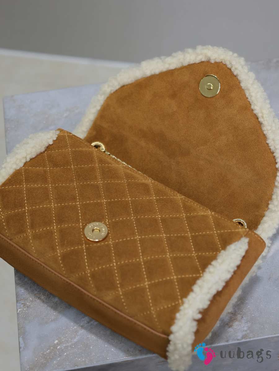 Uubags YSL Envelope Small Shearling Suede Shoulder Bag In Tan 21x13x6cm